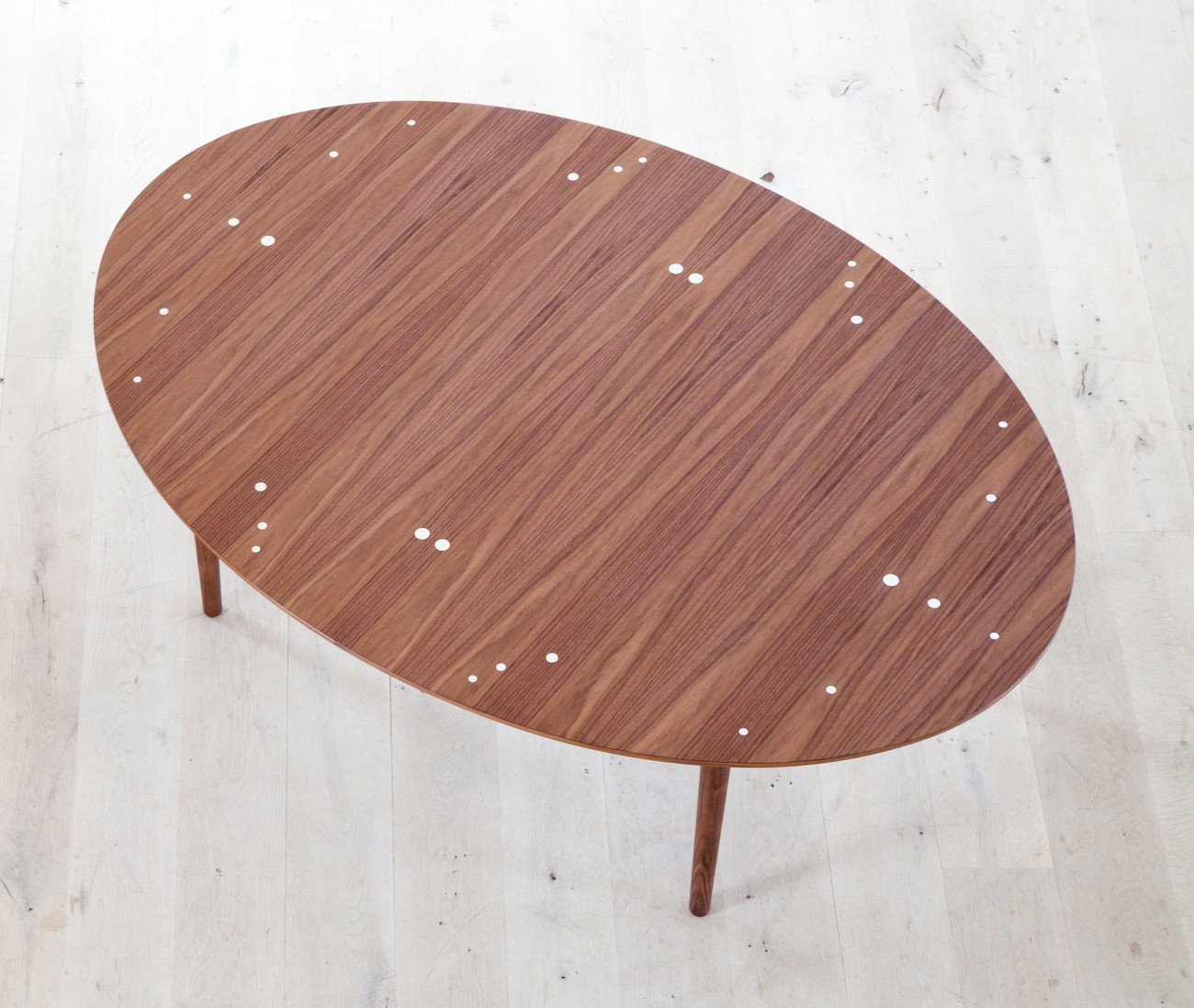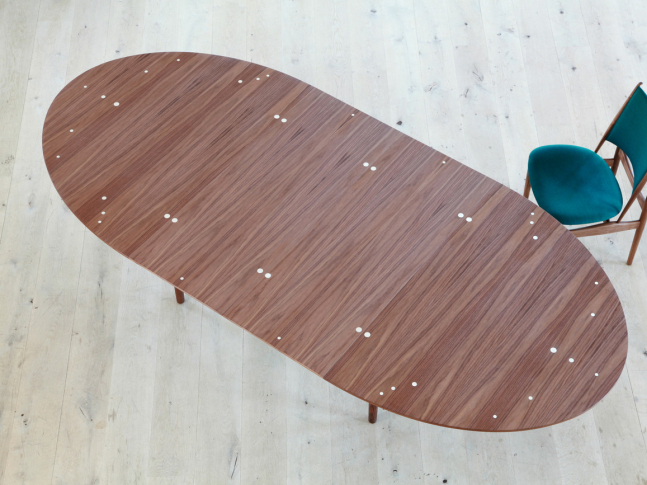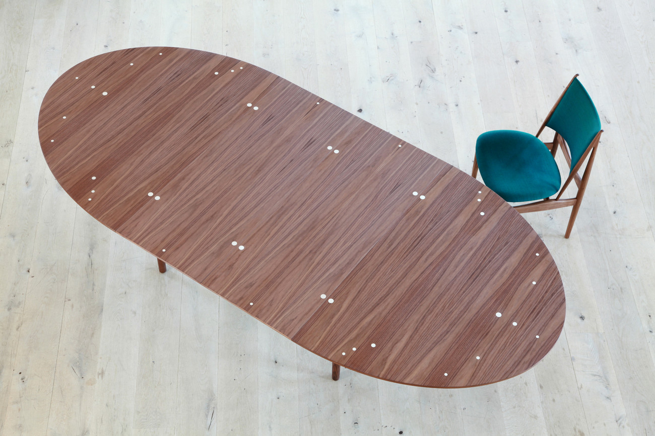 Tento oválný jídelní nebo konferenční stůl lze rozšířit, zatímco rám zůstává ve stejné poloze. Stůl původně vytvořil truhlář Niels Vodder z brazilského růžového dřeva. Následně byl vyroben ze dvou různých dřevěných materiálů s tmavší horní a světlejší spodní deskou.