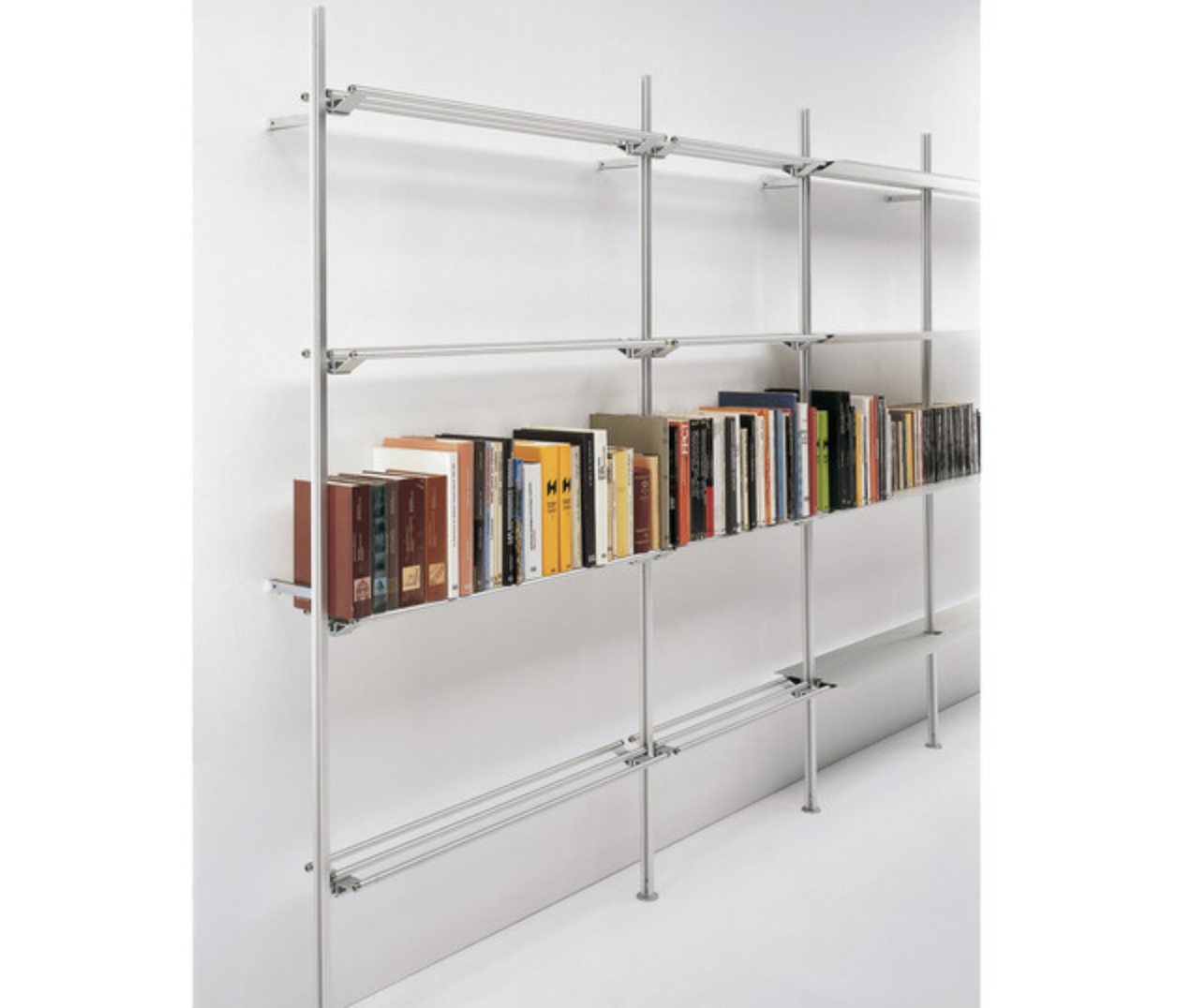 Knihovna Hypóstila úložným prostorem s policemi z hliníkových trubek, které navrhli Lluís Clotet a Oscar Tusquets v roce 1995 na základě nápadu architekta Enrica Mirallese.