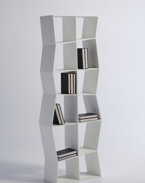 "Cik cak" knihovna vyrobená z materiálu Corian, navržená studiem p.én.lab.