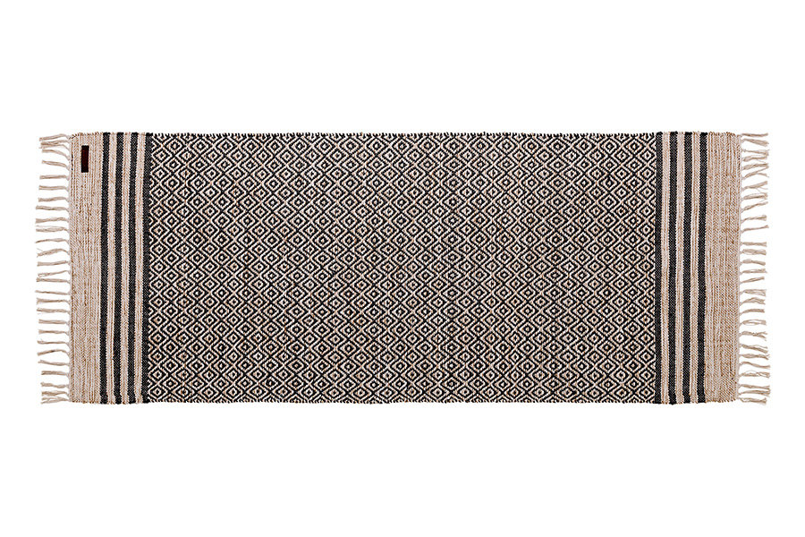 Koberec Jute je ručně utkán z recyklovatelného přírodního materiálu, který je velice pevný a odolný. Károvaný vzor uprostřed je s citem nakombinován s jemným pruhem na okrajích. Na konci kratších stran je koberec ozdoben třásněmi. Lze vybírat ze 2 velikostí a dvou barevných kombinací.