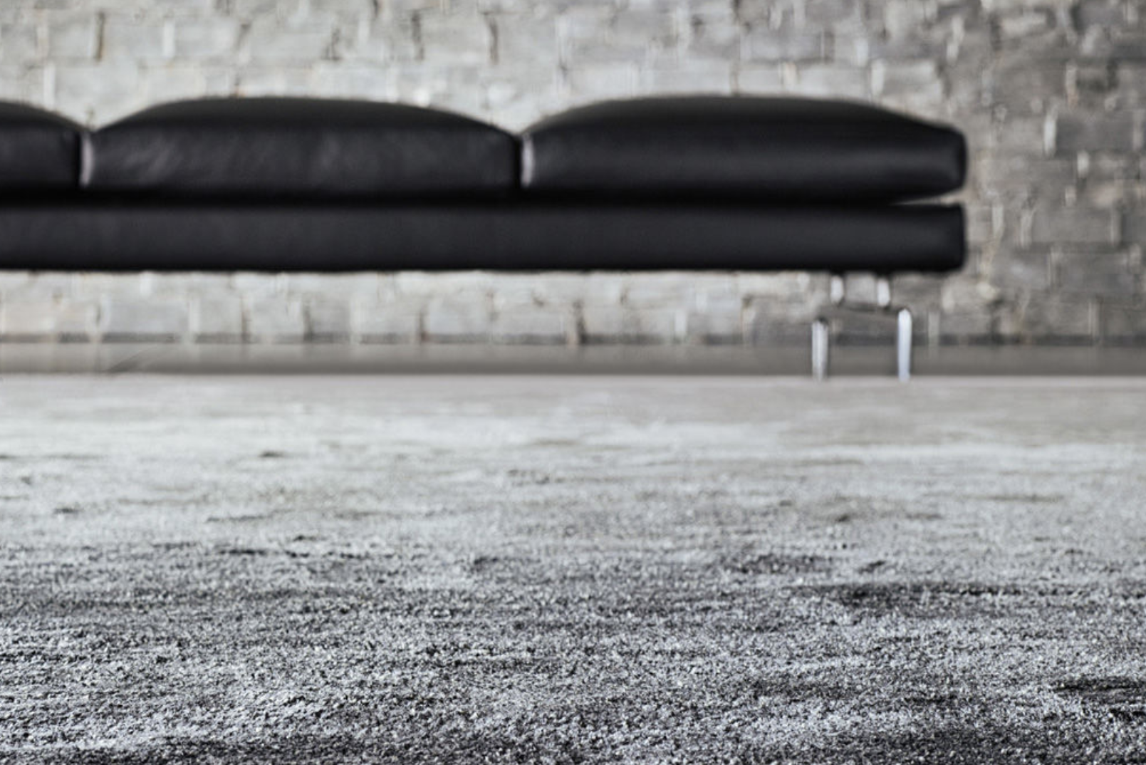 Sofistikované odstíny barvy zesílené výrazným světlem odrážejícím se od vláken dávají kolekci koberců Dibbets Rainbow velkou hloubku.