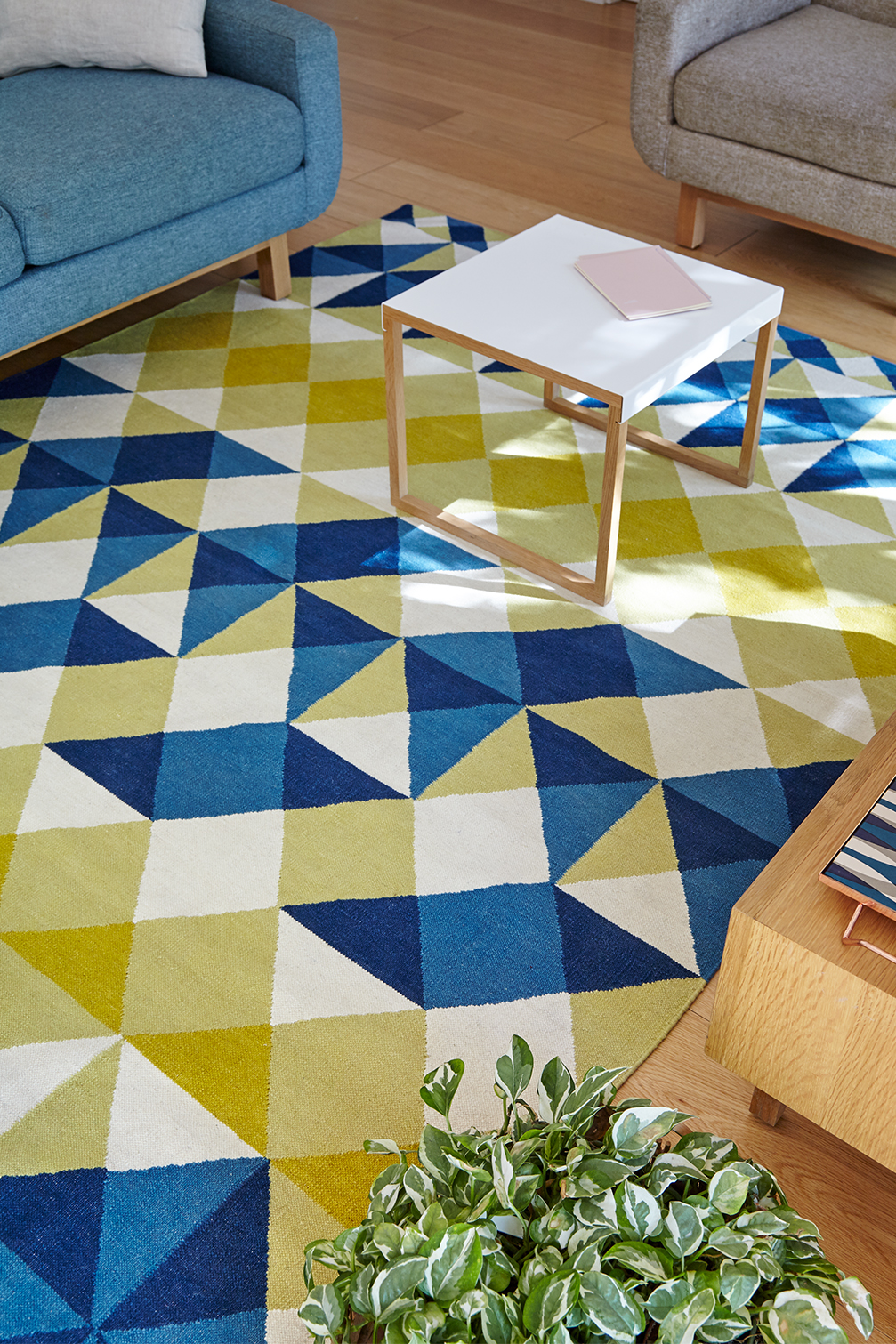 Vlněný koberec španělského výrobce GAN. K dostání je ve dvou barevných provedeních a ve třech různých velikostech: 150x200 cm, 170x240 cm a 200x300 cm