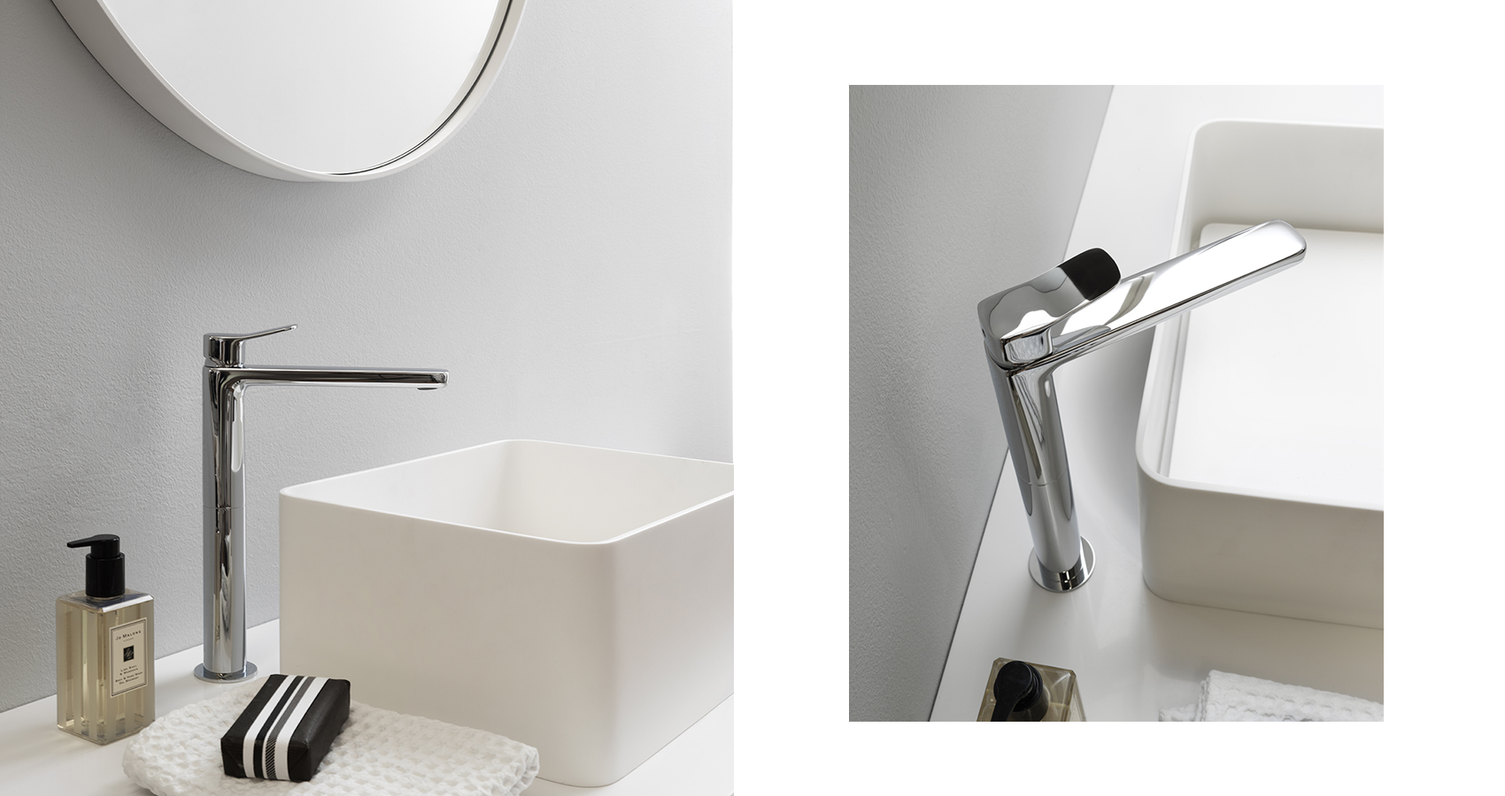 Kolekce koupelnových baterií Brim od výrobce Zucchetti vyrobených z bezolovnaté mosazi.