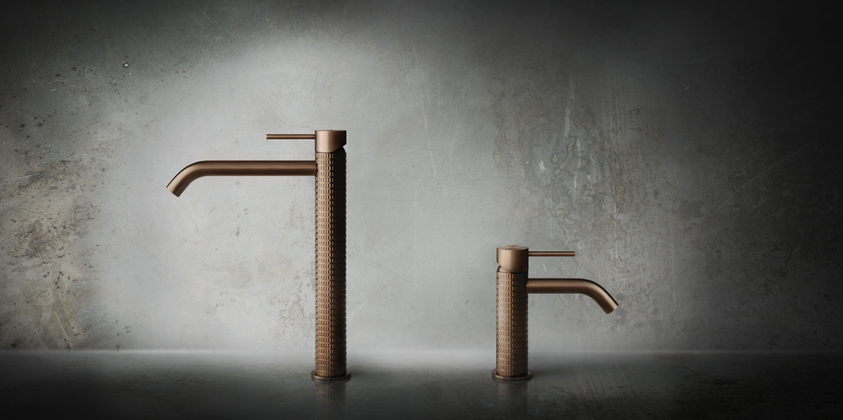 Kolekce minimalistických baterií Intreccio s povrchem dekorovaným malými drážkami. K dostání je široká škála krásných metalických povrchů. Kolekce Intreccio spadá pod kolekci Gessi 316.