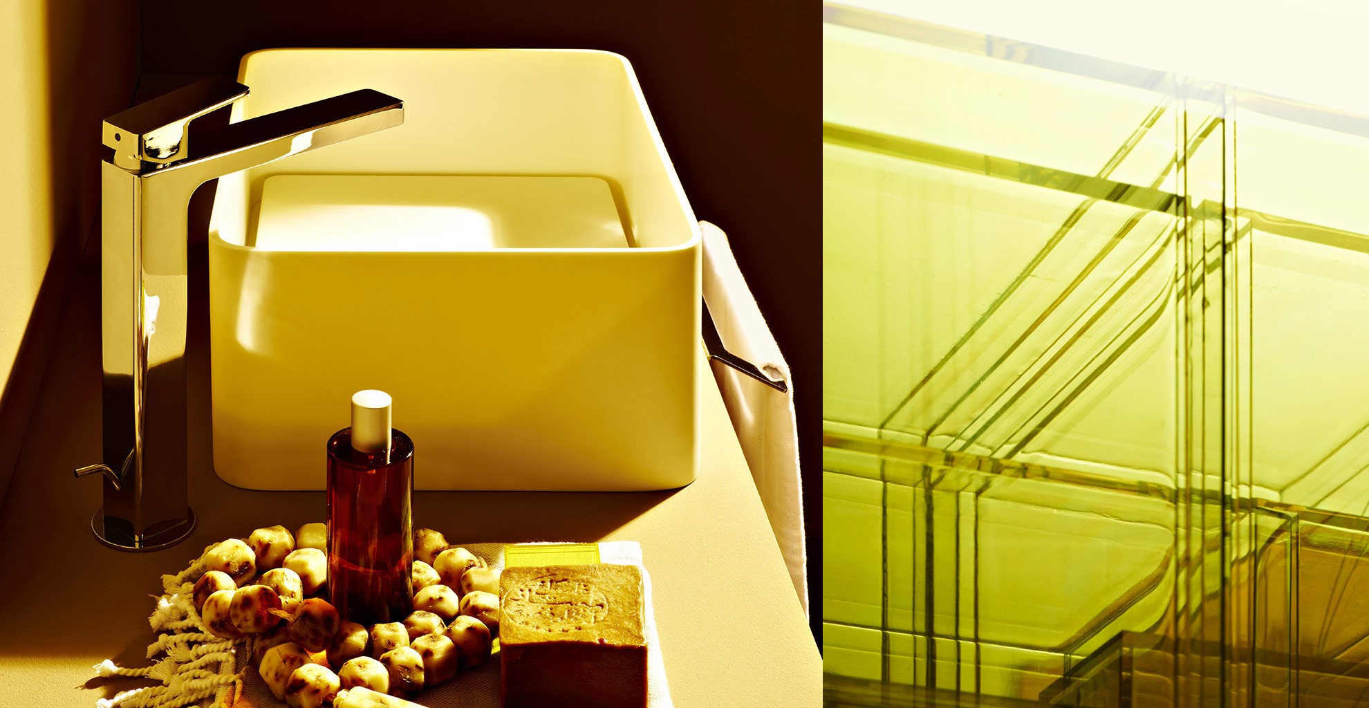 Kolekce koupelnových baterií Jingle od výrobce Zucchetti vyrobených z bezolovnaté mosazi.