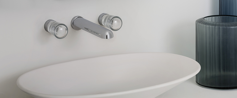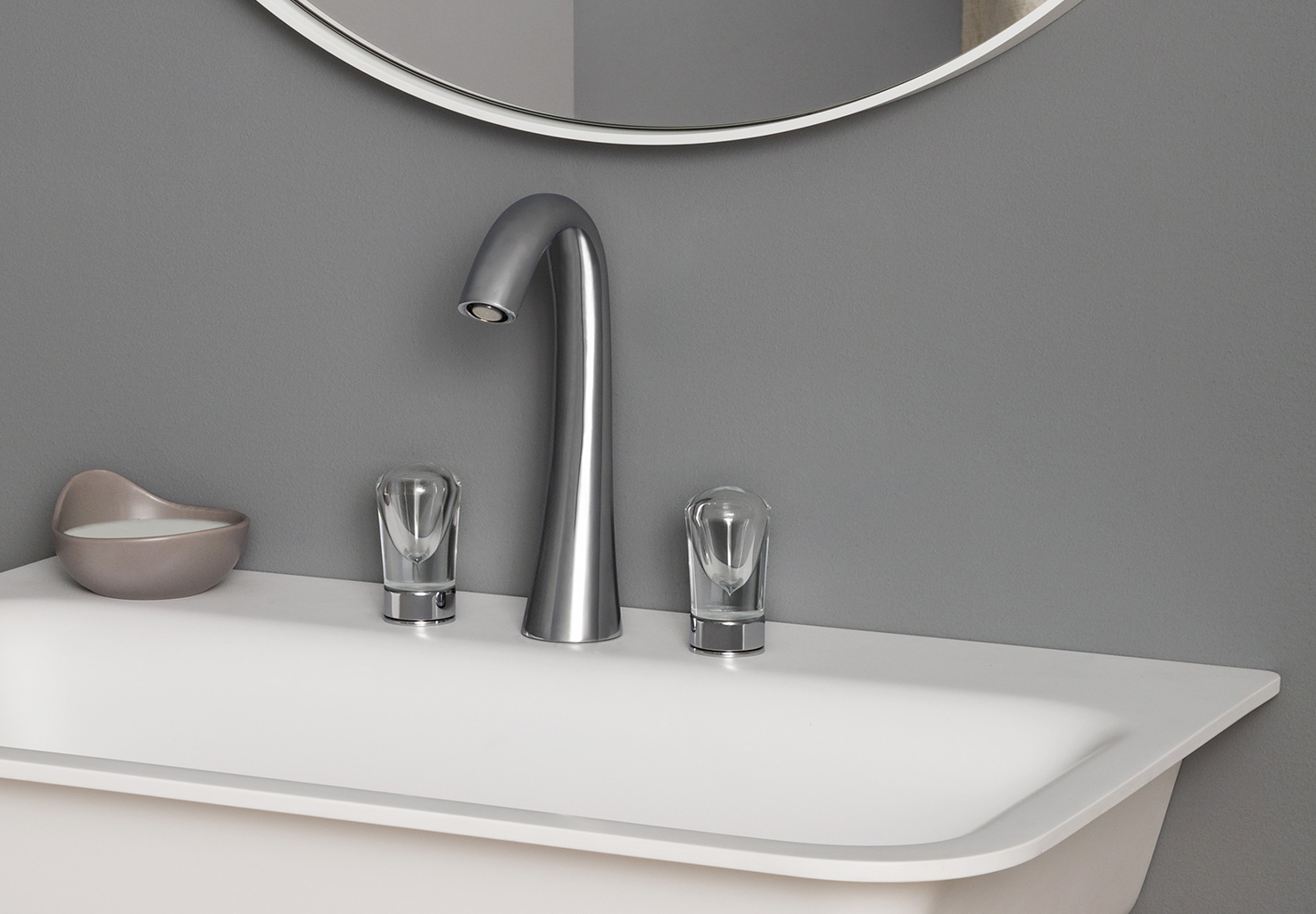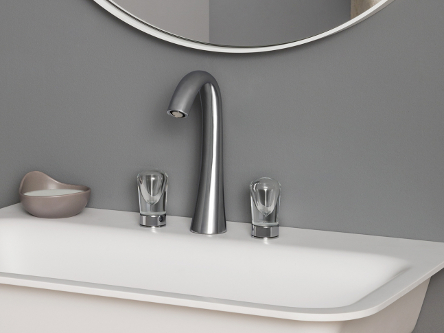 Kolekce koupelnových baterií Nude od výrobce Zucchetti vyrobených z bezolovnaté mosazi.