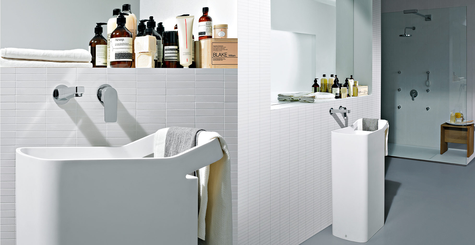 Kolekce koupelnových baterií Wind od výrobce Zucchetti vyrobených z bezolovnaté mosazi.