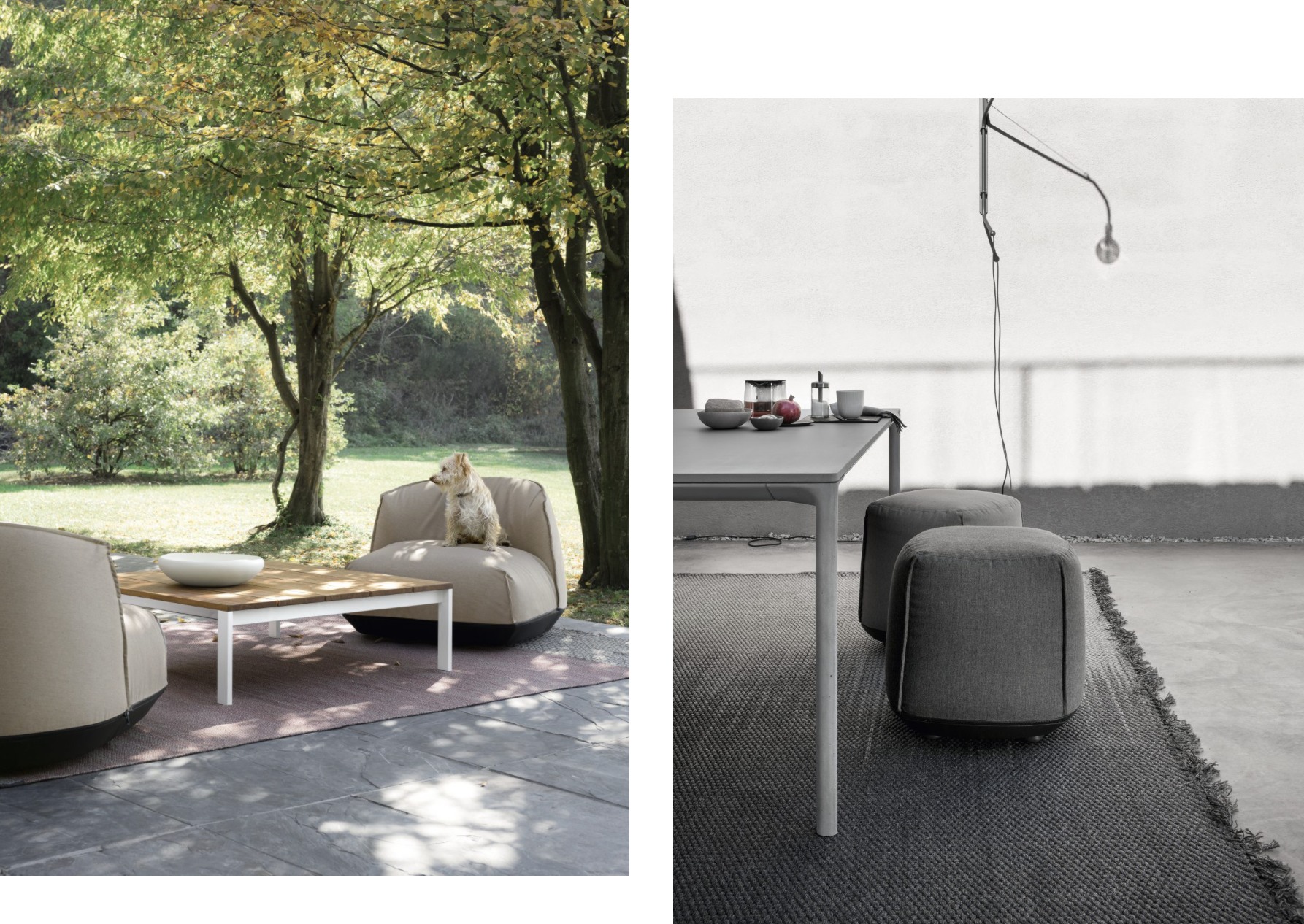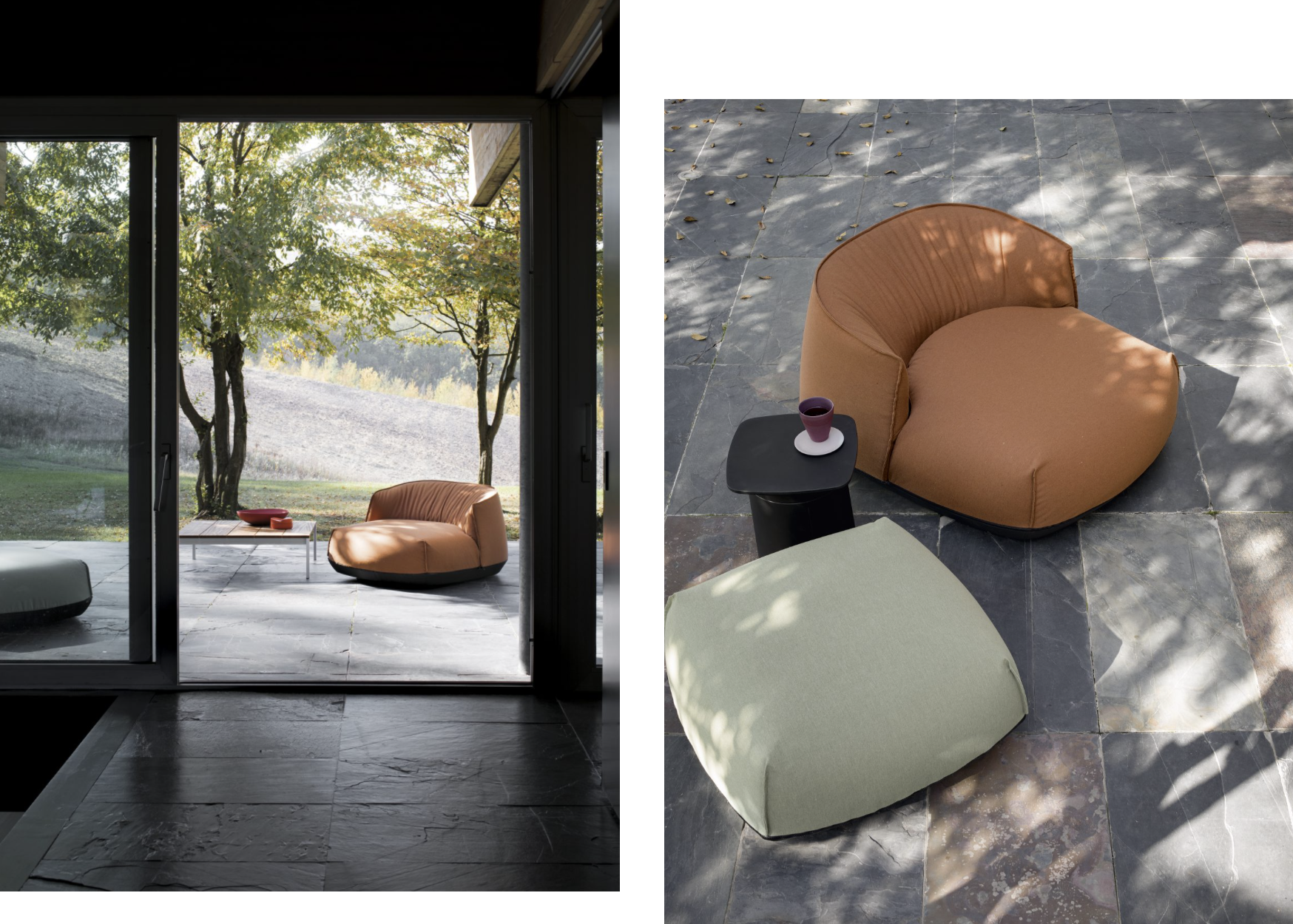 Brioni, inspirovaná stejnojmenným souostrovím v Jaderském moři, je kolekce sedadel zahrnujících křesla, lehátka a pufy s měkkým a plným vzhledem.