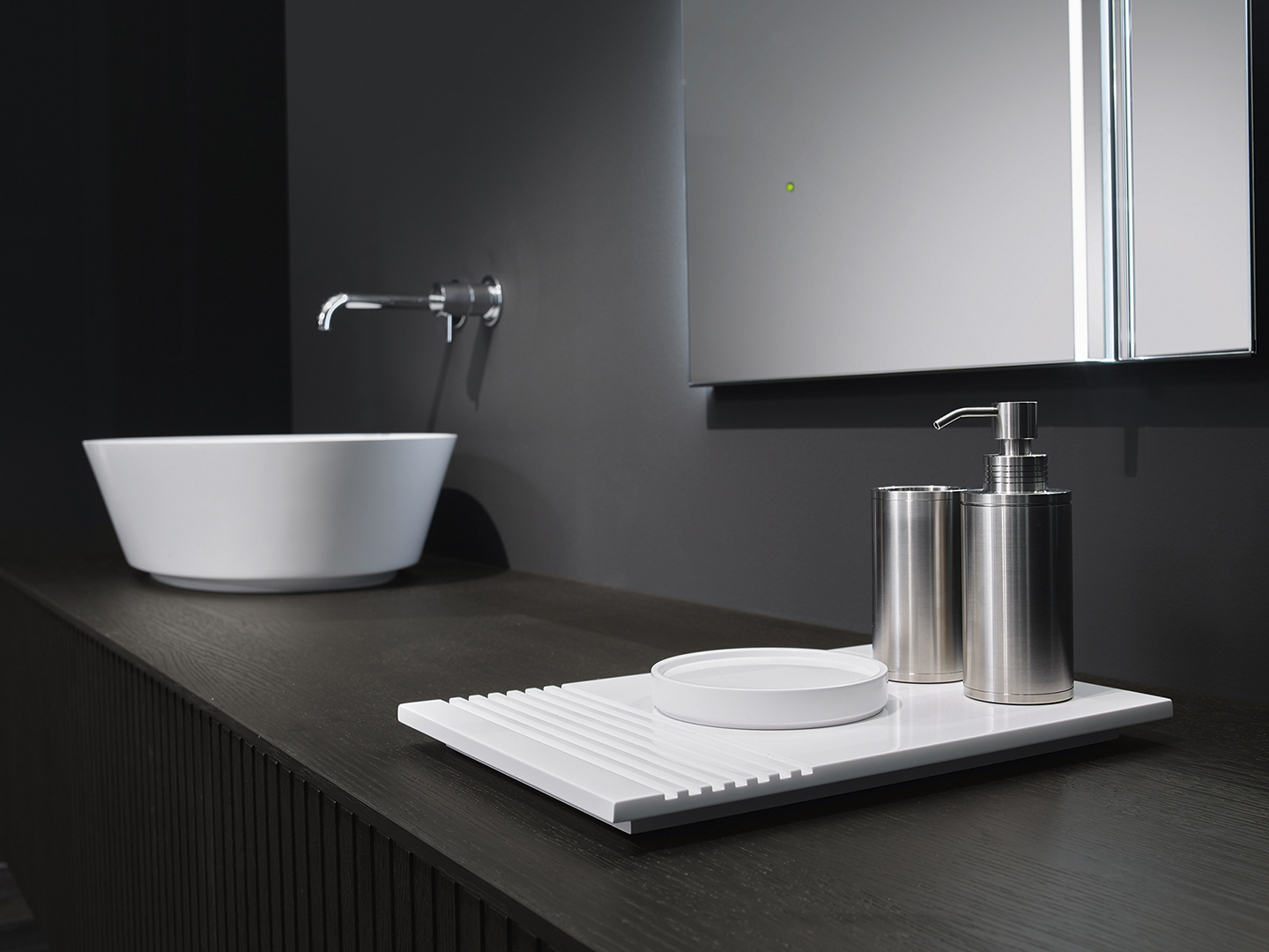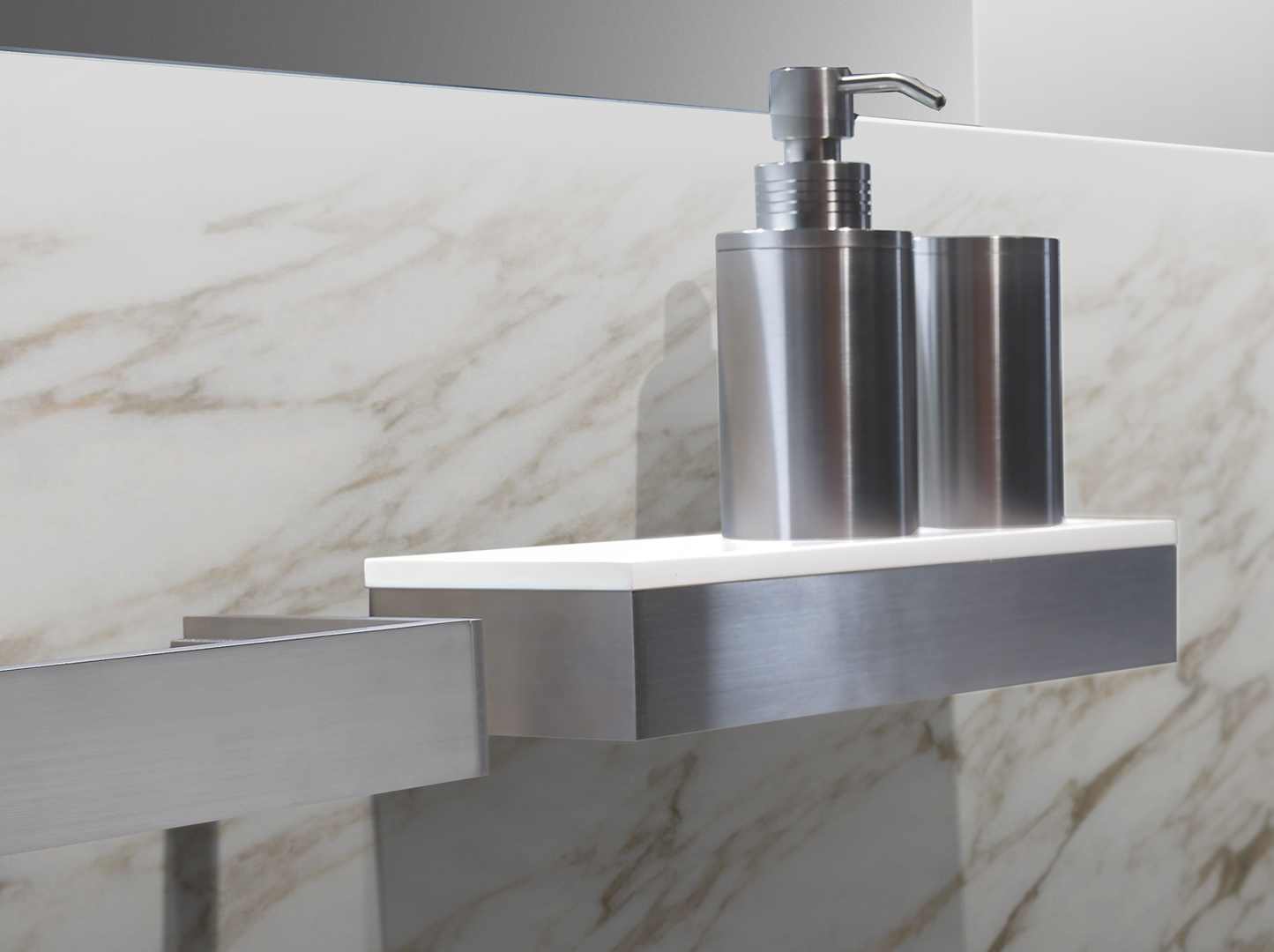 Dávkovač mýdla, kartáč, držák na ručník, držák na toaletní papír, ocelová police a věšák na šaty vyrobený z nerezové oceli 316.
