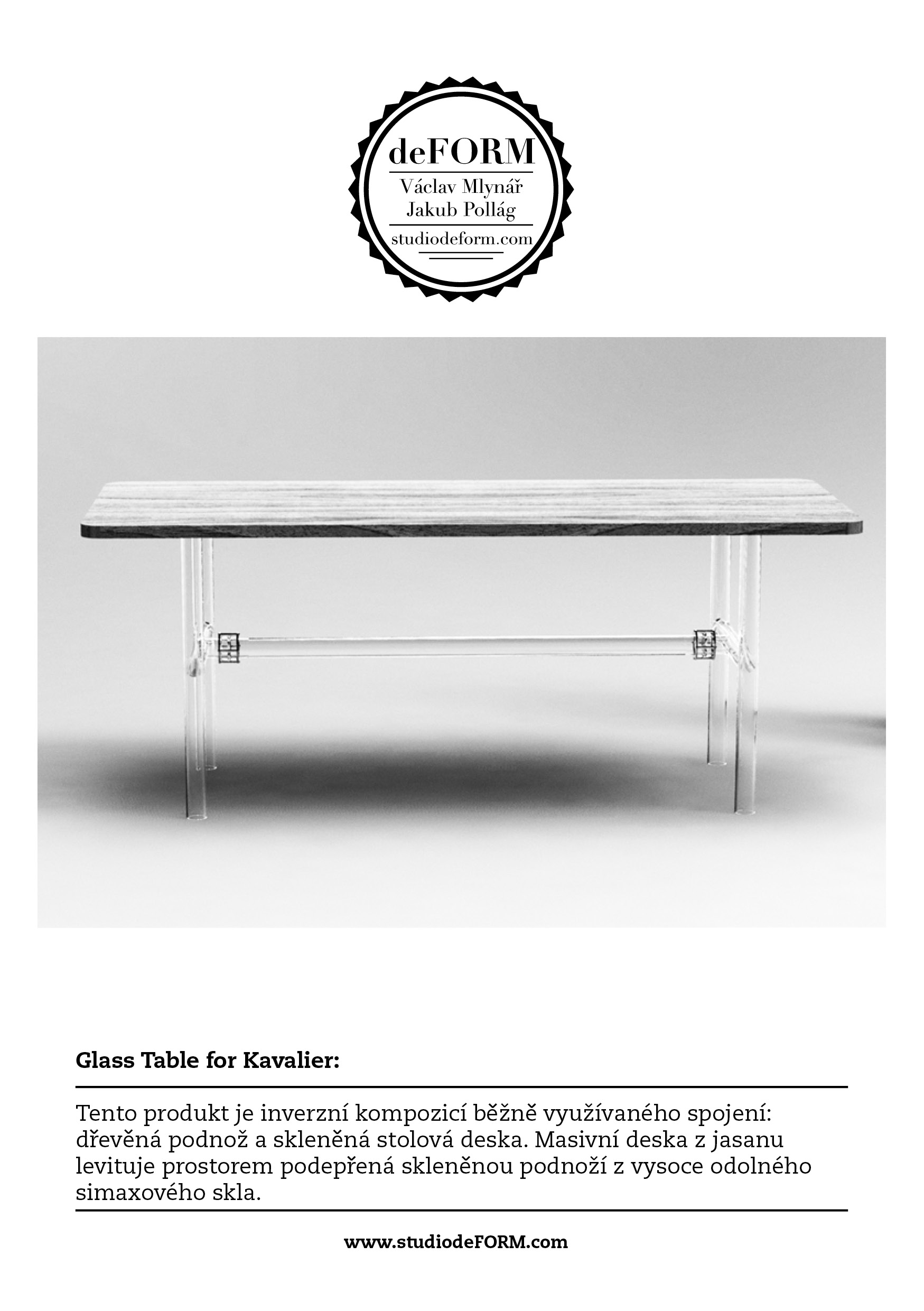 Tento produkt je inverzní kompozicí bežne využívaného spojení: drevená podnož a sklenená stolová deska. Masivní deska z jasanu levituje prostorem podeprená sklenenou podnoží z vysoce odolného simaxového skla.