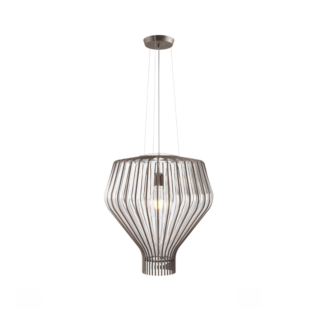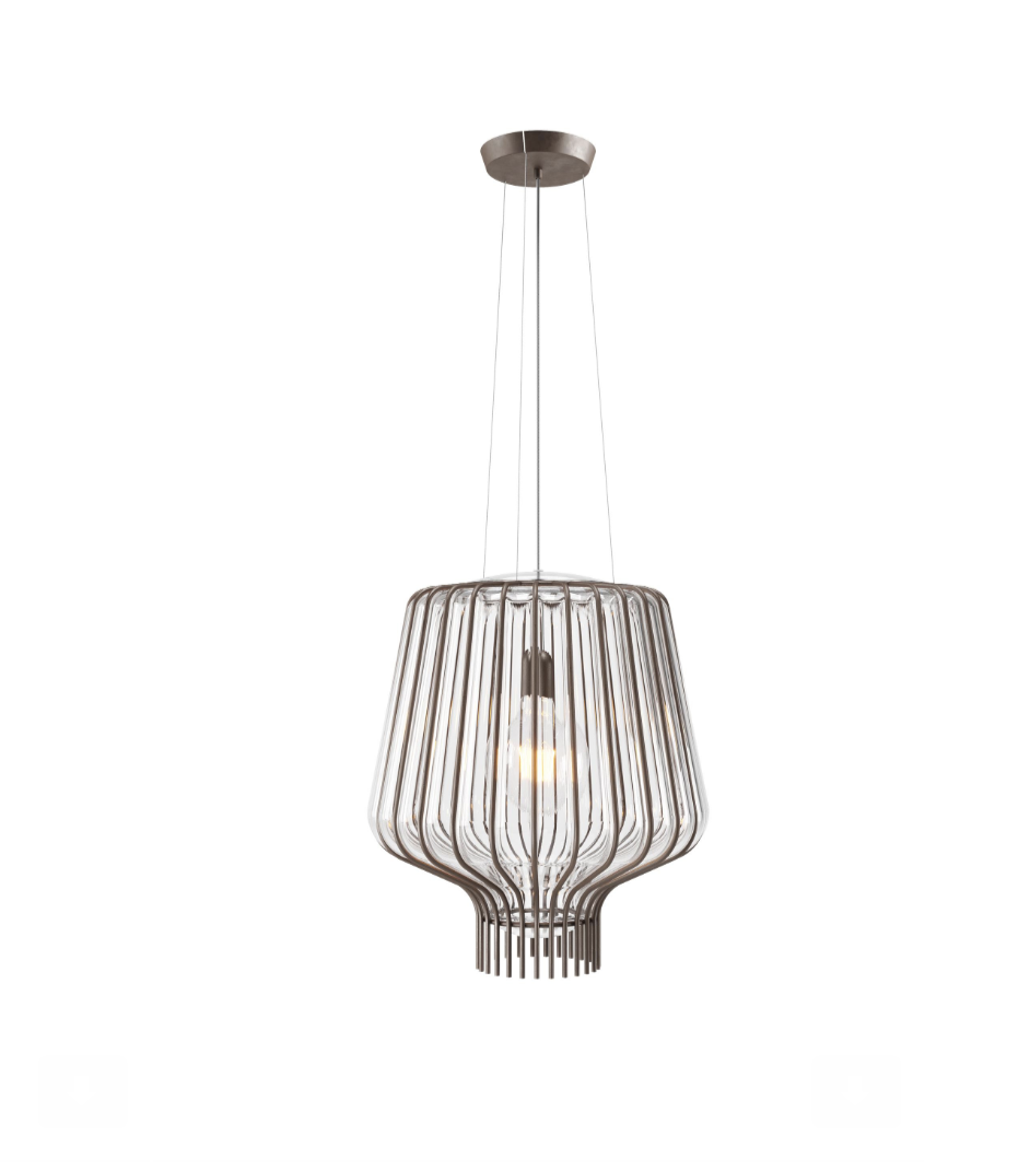 Svítidla Saya jsou vhodná pro kryté venkovní plochy. Je to příběh o propojení mezi Východem a Západem, kde jsou estetika a vzpomínka na vzdálené kultury kombinovány s benátskou tradicí skla. Tvar je inspirován velkou kapkou rosy, která se posouvá směrem dolů podél řady kovových drátů. Velké tělo skla je v kleci vytváří dokonalou rovnováhu mezi světlem a dekorací.