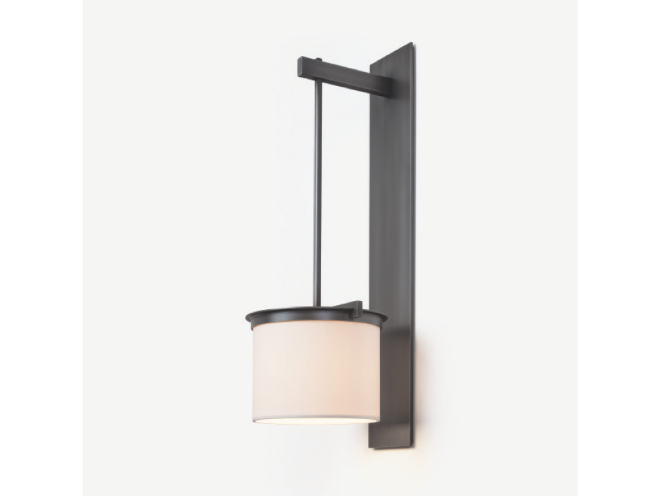 Ručně vyráběné nástěnné svítidlo s kovovým rámem a papírovým stínidlem.