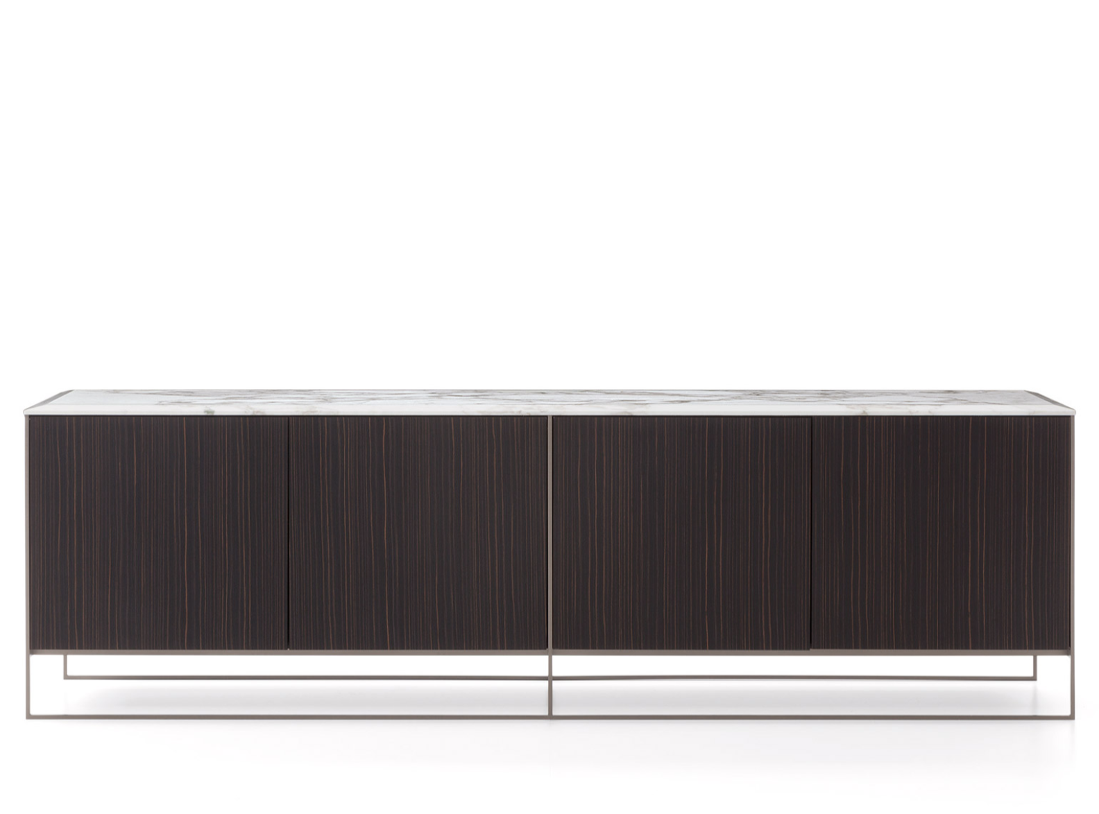 Volba elegantních a luxusních materiálů kontrastuje s jednoduchostí designu. Struktura je v saténovém kovu s bronzovou povrchovou úpravou. Boky a dveře jsou k dispozici v ebenové dýze s povrchovou úpravou neprůhledného laku s otevřenými póry nebo dýhou sucupira mořenou Mink, zatímco zkosená horní část je z mramoru Calacatta.