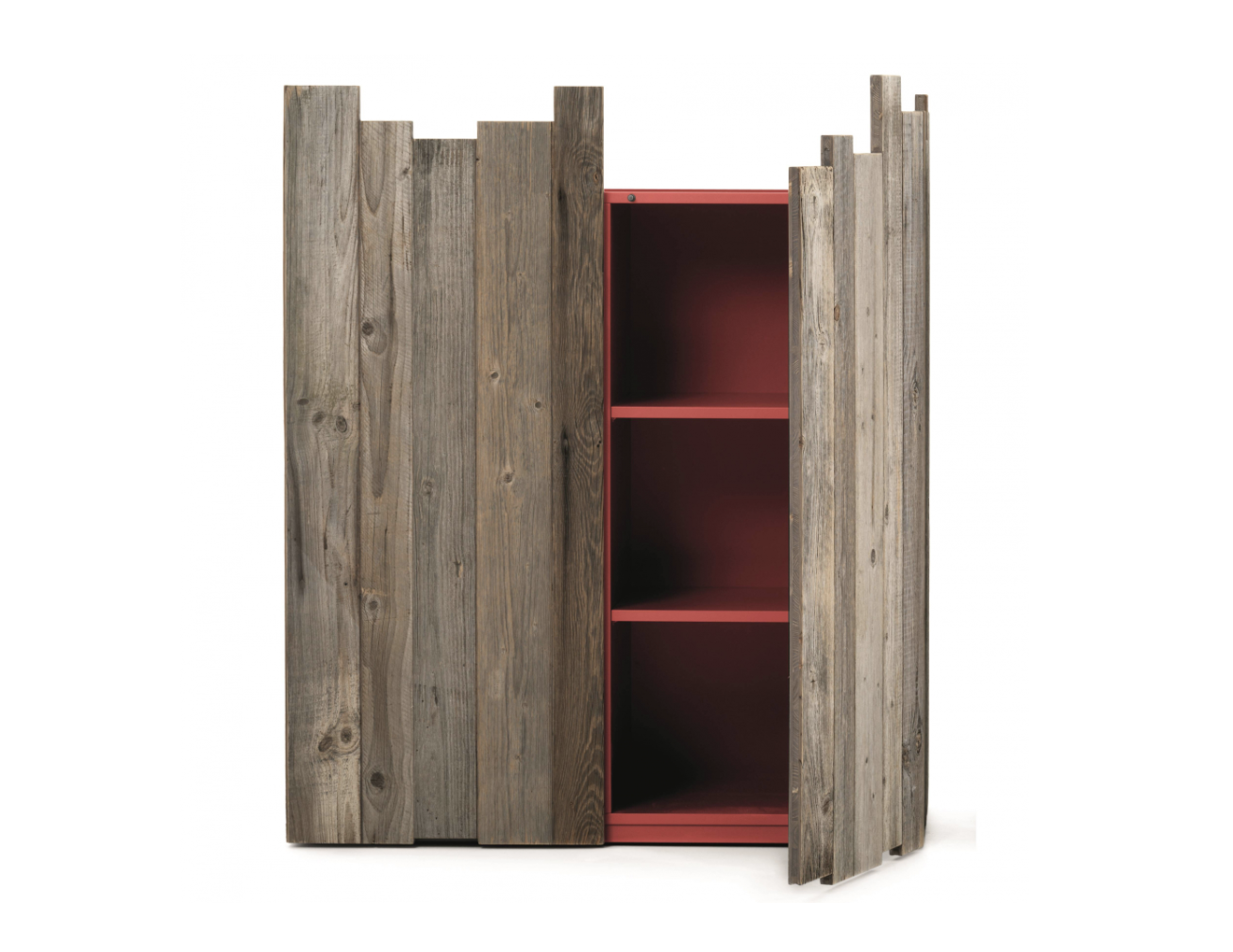 Dřevěný příborník se 2 dveřmi a 4 vnitřními policemi. Dveře a boky jsou z prken ze starého borovicového dřeva.