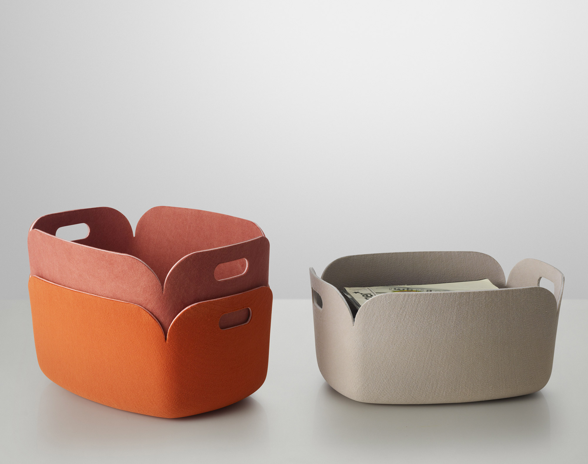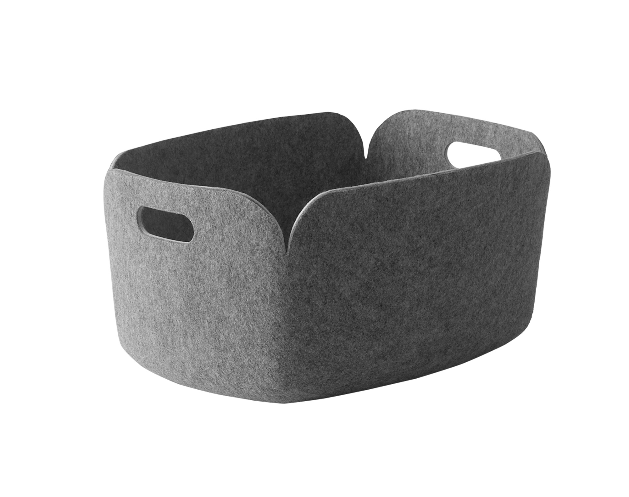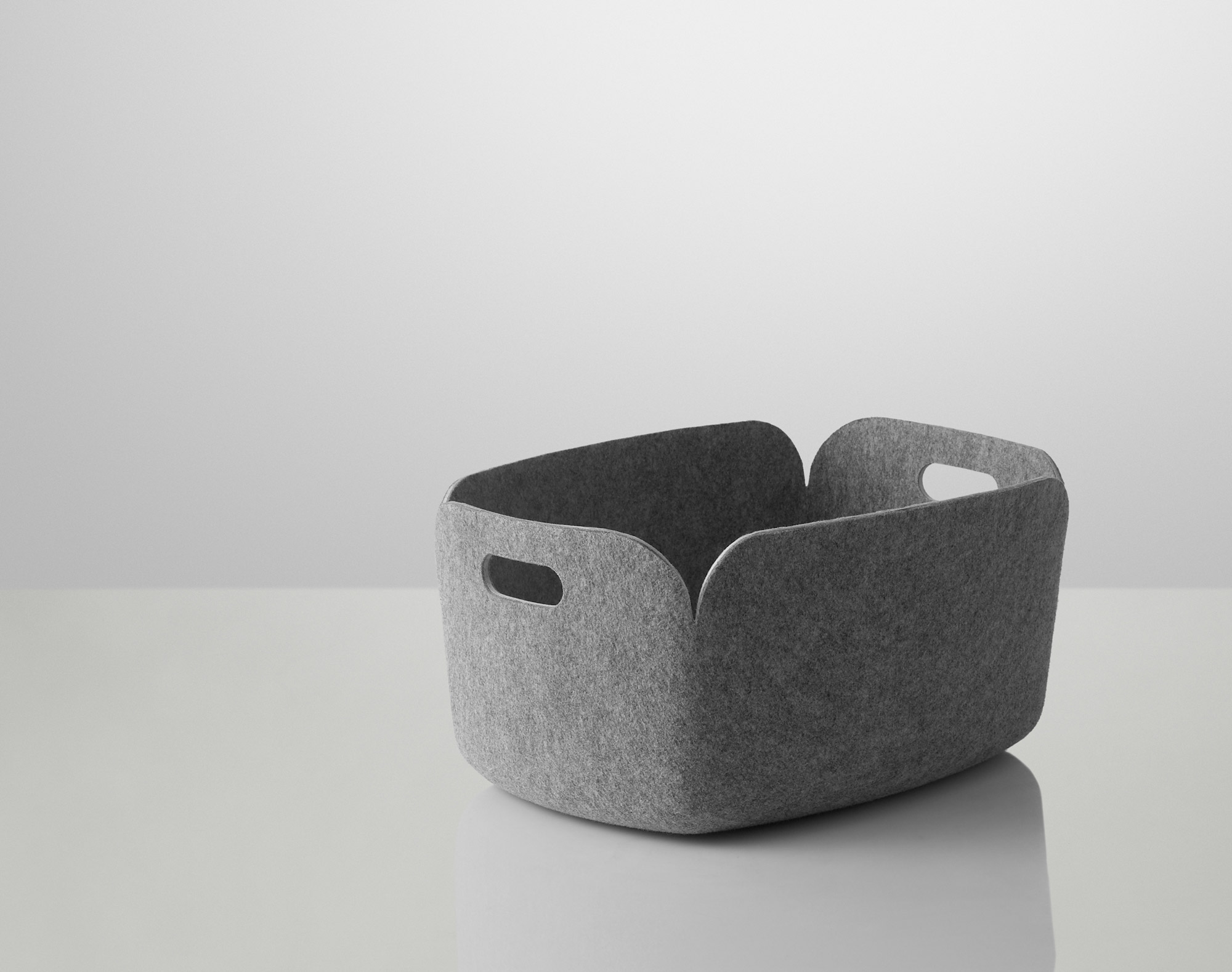 Muuto Restore je je plstěný box / koš na časopisy a další skvělé věci. Plstěný povrh společně s měkkým oblým tvarem dává koši přátelský vzhled. Koš je vyroben z recyklovaných PET lahví - odtud jeho název Restore.