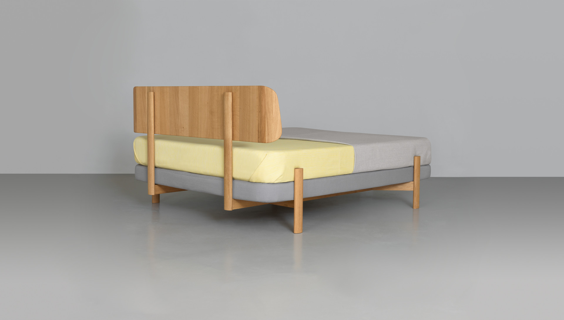 KOSI - neobvykle lehká postel. Inovativní je její konstrukce: pružinová podložka a matrace jsou z boků podepřeny eliptickými nohami a rámem s příčným nosníkem. Rohy mají velkorysé poloměry, čímž podtrhují objem čalouněných prvků. Kryt matrace pak pohodlí násobí. Výrobce: Zeitraum