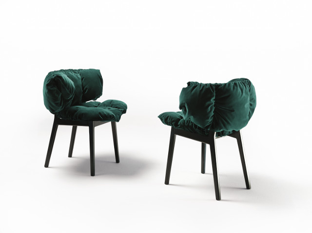 Křeslo ve tvaru měkkosti. Plně čalouněné v polstrovaném a prošívaném sametu. Použitelné v každé místnosti v domě.