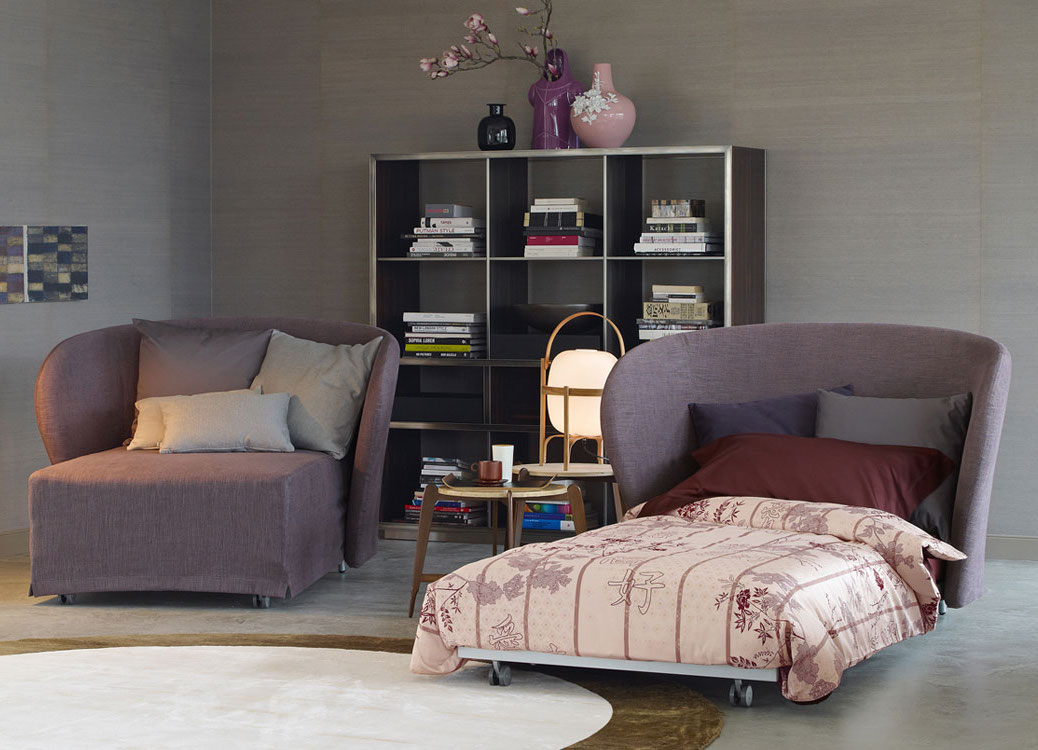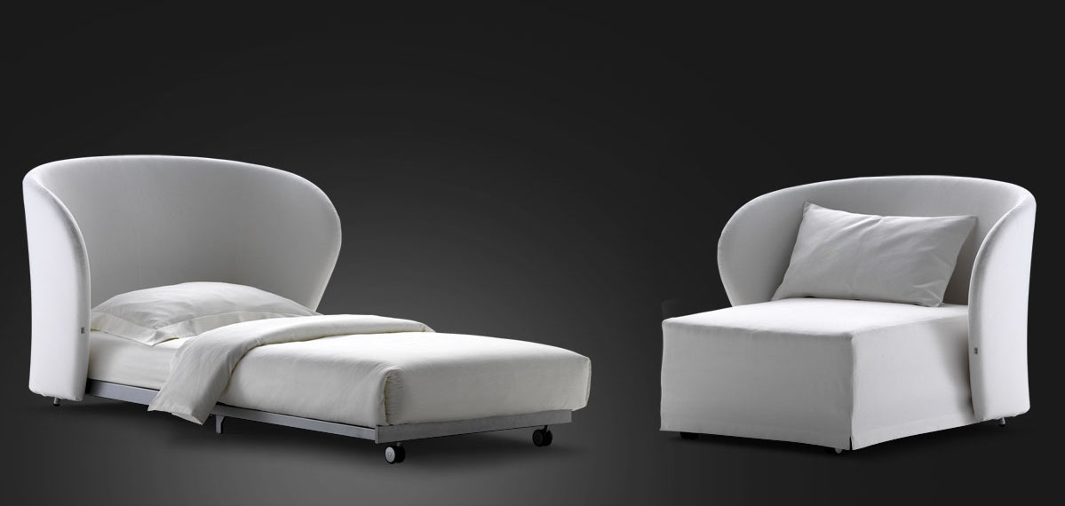 Křeslo a pohovka, které lze rychle přeměnit na pohodlné samostatné lůžko (velikost matrace 90x200 cm) nebo na manželskou postel (velikost matrace 160x200 cm). Jsou k dispozici s plně odnímatelnými látkovýmí potahy.