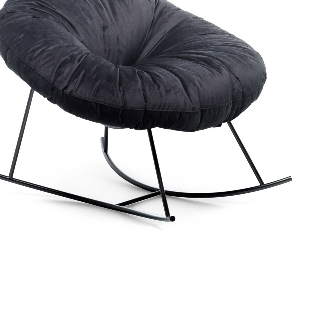 Closer je čalouněné křeslo navržené společností Marzia a Leonardo Dainelli pro značku Mogg, s černou kovovou konstrukcí a polštářem potaženým látkou a vyplněným pěřím s odnímatelným potahem ze sametové nebo jemné vlny.