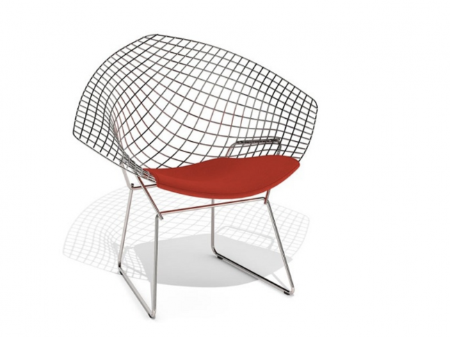 Křeslo Diamond od výrobce Knoll z chromu a kůže. Dostupné v několika barvách.