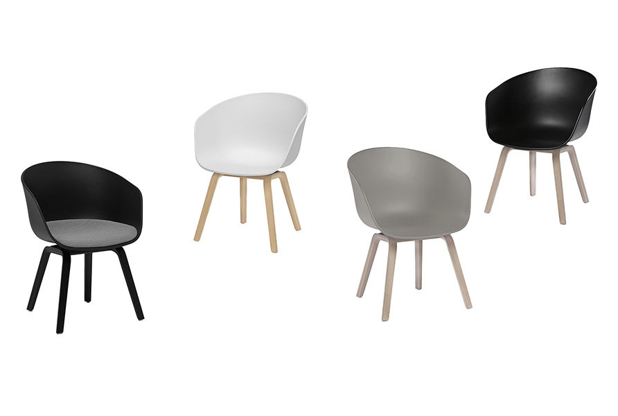 Křeslo AAC42 (About A Chair - Low) má mnoho možností vzhledu. Probarvovaný polypropylenový sedák lze polstrovat zepředu látkami kolekce Kvadrat, nebo kůží Camo. Podnoží se vyrábí buď z mýdlovaného, lakovaného nebo černě mořeného dubu. Sedák pro ještě větší pohodlí můžete doplnit snímatelným koženým podsedákem.