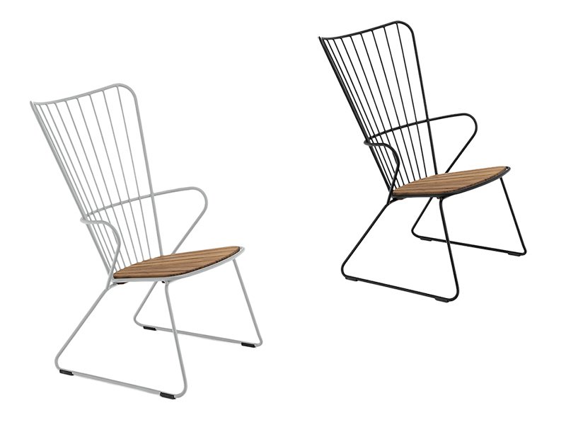 Křeslo Paon je součástí stejnojmenné kolekce venkovního nábytku. Vzhled snoubí skandinávskou lehkost s nádechem francouzské viktoriánské romantiky. Rám je vyroben z práškově lakovaného kovu, zatímco sedák z širokých olejovaných bambusových lamel, které zaručují komfortní sezení.