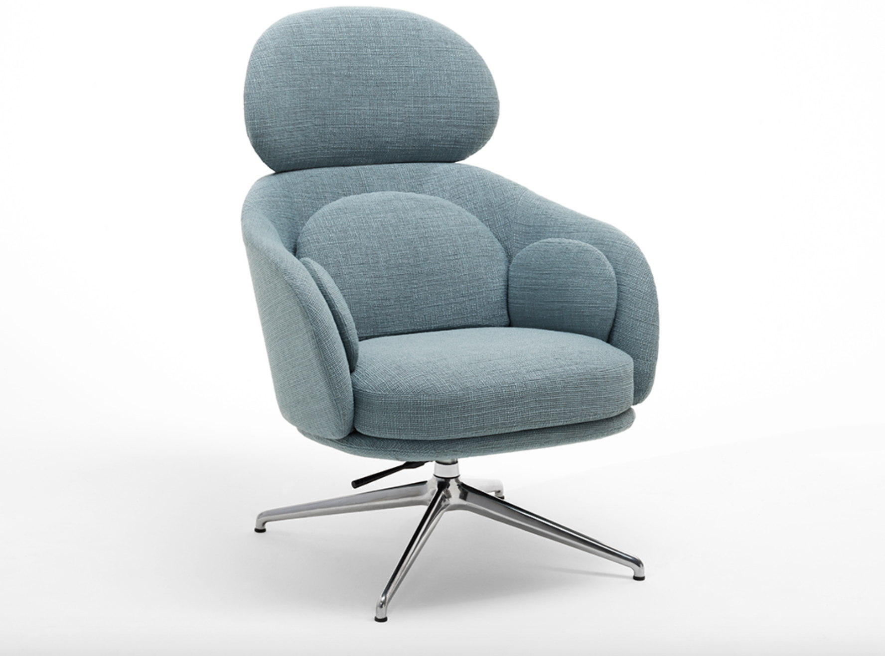Křeslo Sunset od výrobce Saba se skládá ze dvou odlišných částí - skořepiny a opěrky hlavy - zesvětluje tak siluetu produktu vytvořením vizuálně harmonické linie. Vnější protáhlý a přísný povrch kontrastuje s vnitřním polstrovaným, který je mnohem měkčí a vytváří originální grafický design.
