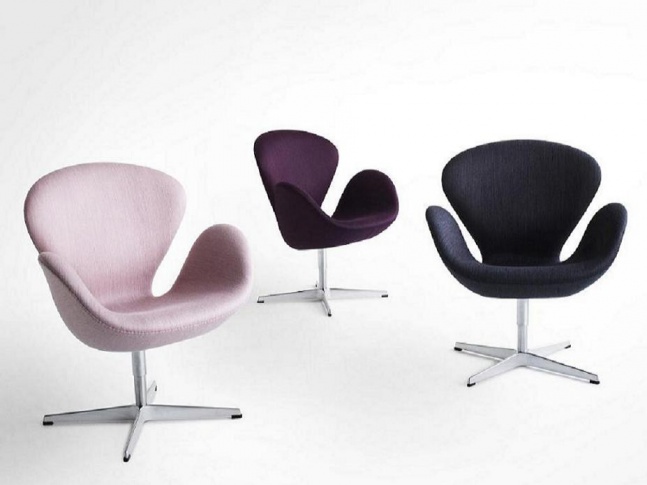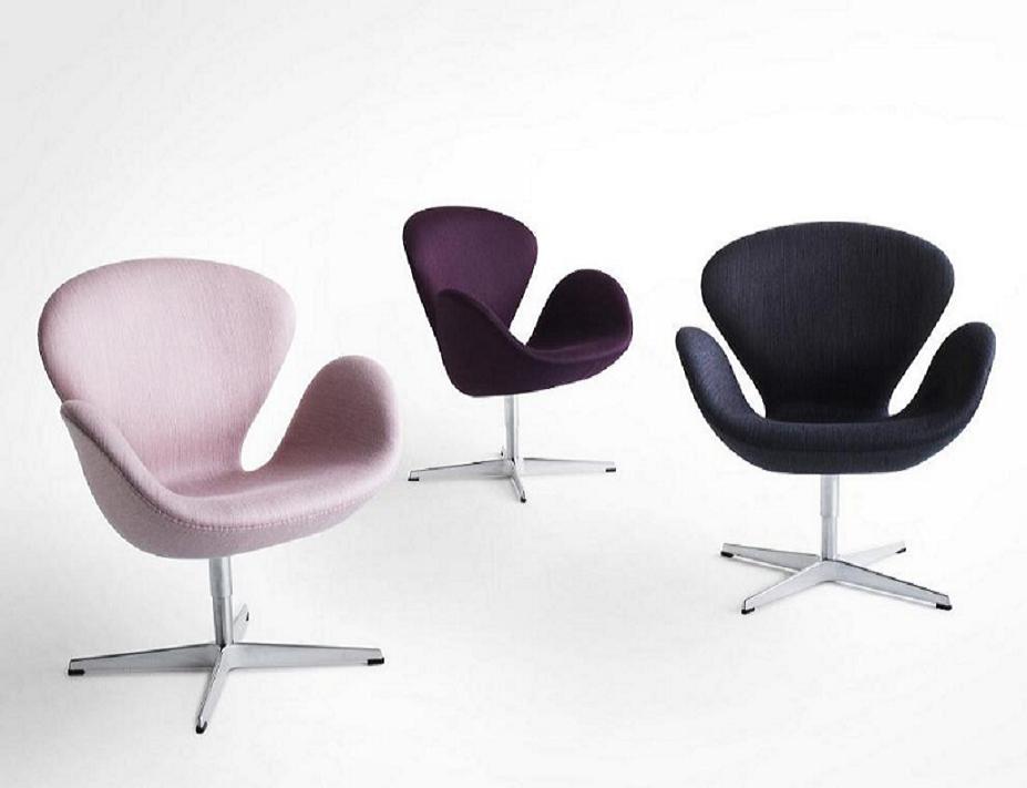 Arne Jacobsen vytvořil křeslo SWAN™ pro lobby a lounge v Hotel Royal v Kodani v roce 1958 podle teorie: žádné přímé linky - pouze křivky. Základem otočné židle je skořepina ze syntetického materiálu, čalouněná látkou nebo kůží, posažená na hvězdici základny z leštěného hliníku.
