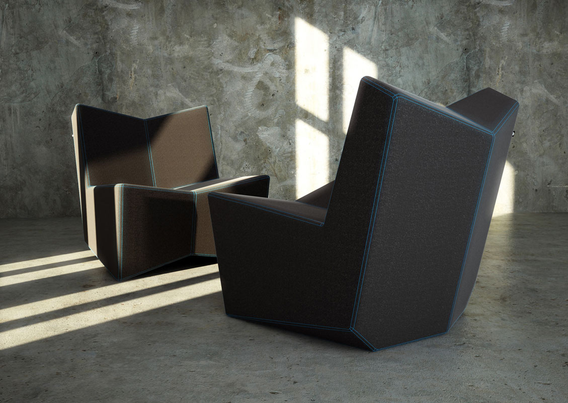 Kolekce čalouněného nábytku založená na kubistickém tvarosloví.
