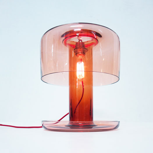 Stolní lampa Glass Is Tomorrow. Vytvořená je z téměř rudého skla a je dostupná va dvou variantách.
