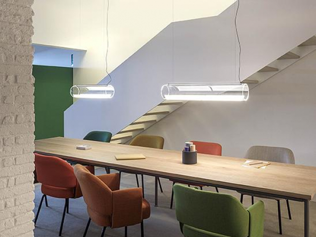 Kolekce závěsných lamp Guise, jak vertikálních, tak i horizontálních, což jim umožňuje umístit nad jídelní stoly, kanceláře nebo obývací místnosti a prostory s cirkulací, s jedním kováním nebo několika sestavami.