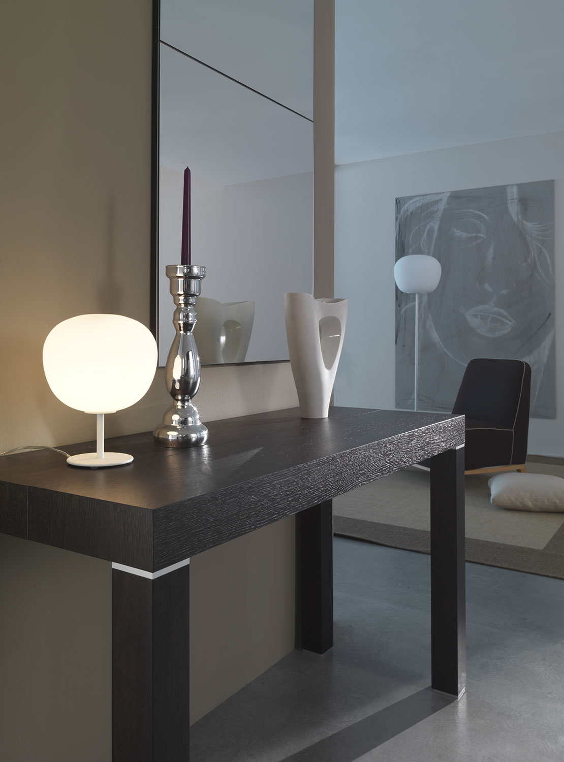 Kolekce lamp Lumi F07 se skládá z visacích, stolních, podlahových, nástěnných a stropních svítidel v mnoha různých tvarech a velikostech pro vnitřní použití. Všechny difuzory jsou v bílé saténové foukané sklo, zatímco nosné konstrukce jsou z bílého lakovaného kovu nebo polyesteru, vyztužené skleněnými vlákny.