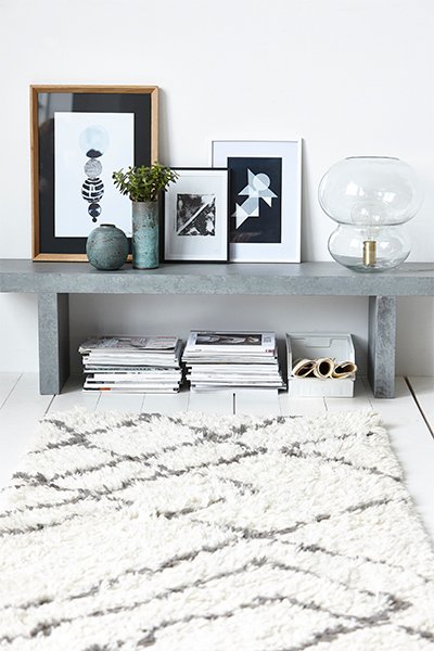 Lavice Bench představuje nadčasový design. Je vyrobena z pozinkovaných železných plechů, které povrchovou úpravou připomínají beton v teplé šedé barvě. Lze ji doplnit polštářemi a vytvořit tak útulné místo k odpočinku. Je vhodná pouze k vnitřnímu užívání.