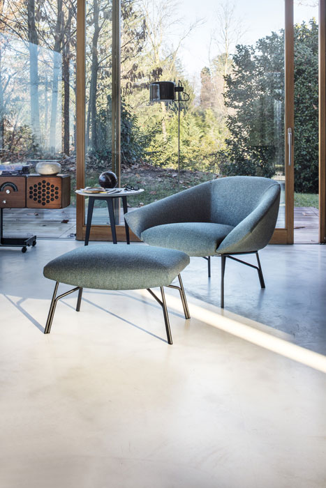 Elegantní a diskrétní křeslo pro rozhovory, ale zároveň i soukromé a měkké a hnízdo pro čtení a poslech hudby.