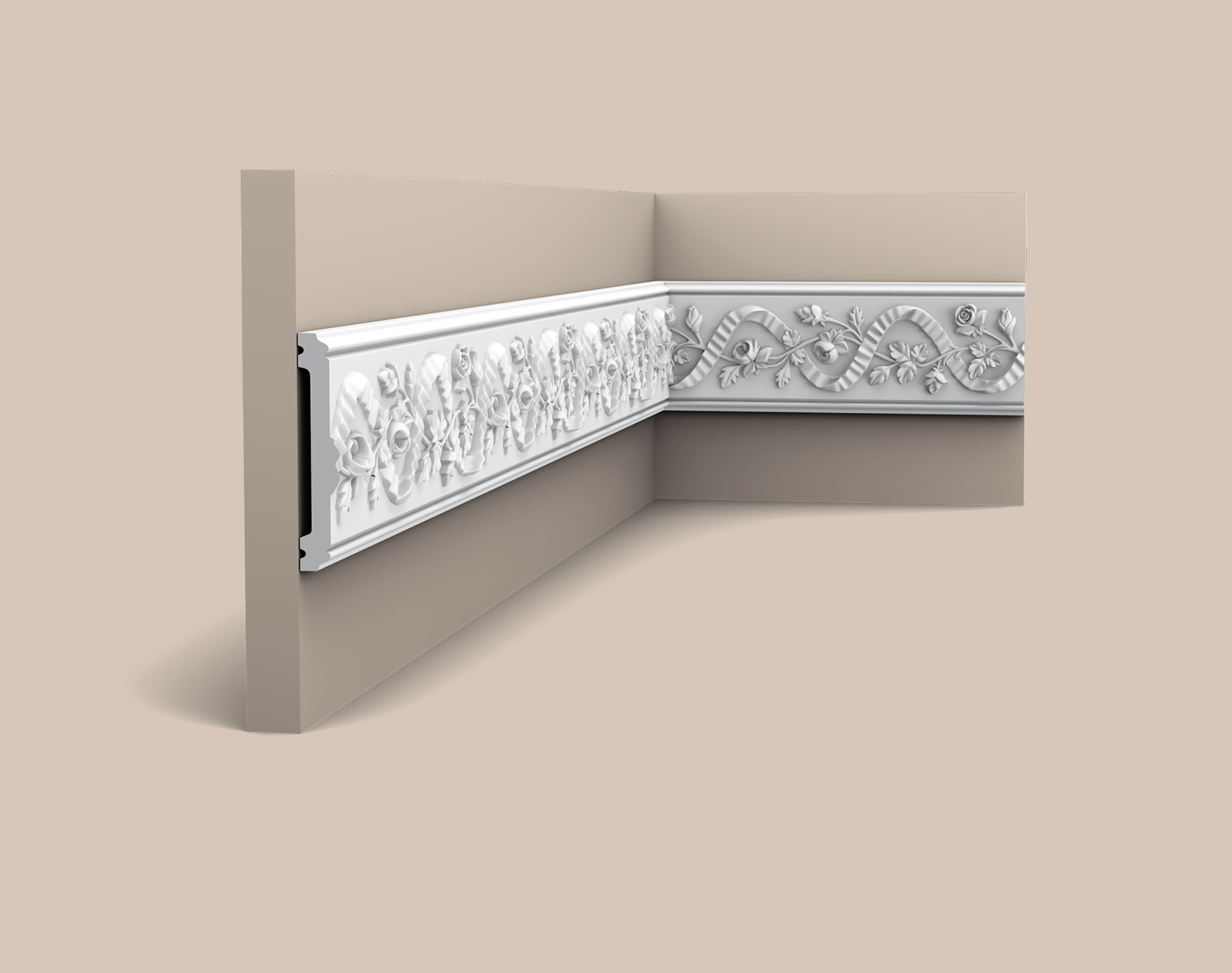 Půvabná lemovací lišta se stylovým motivem růží a stuh. Dodá trochu charakteru navíc klasickému i modernímu interiéru.