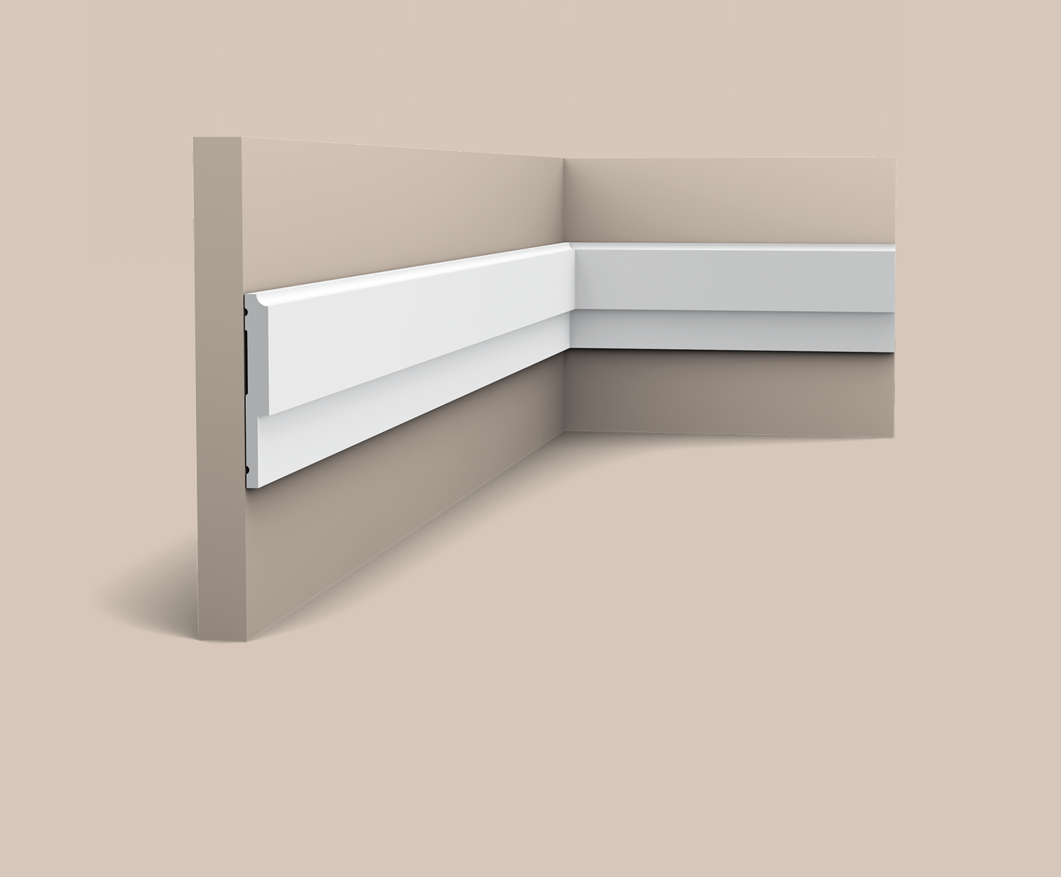 Tento stupňovitý profil je ideální pro dodání hloubky plochým stropním lištám. Lze ho instalovat na stěny i strop.
