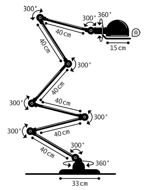 Stojací lampa Loft D9406 je vyrobena z kovu na základě kloubového systému. Tento systém umožňuje nastavení polohy bez rizika polámání přívodního kabelu. Její jedinečnost tkví v číselném označení každé lampy.