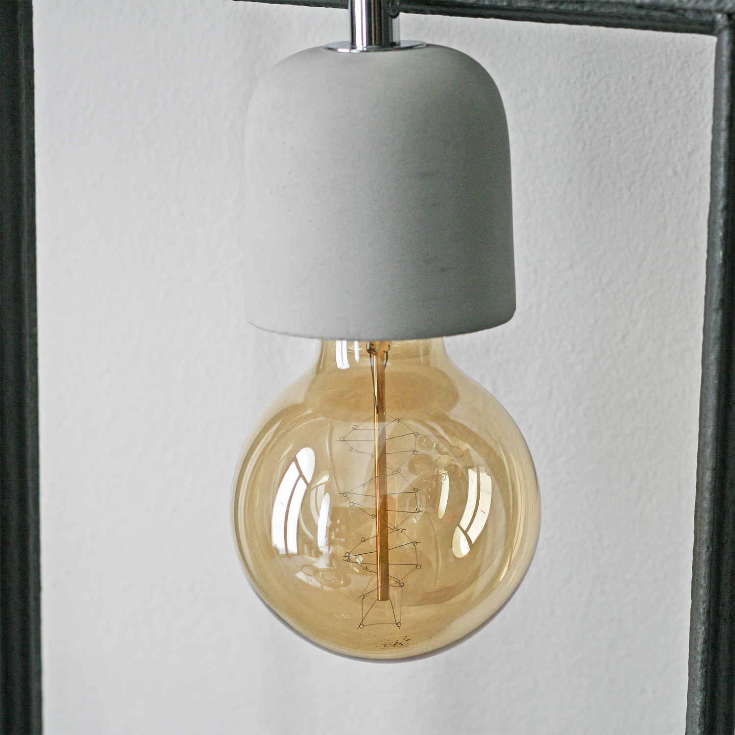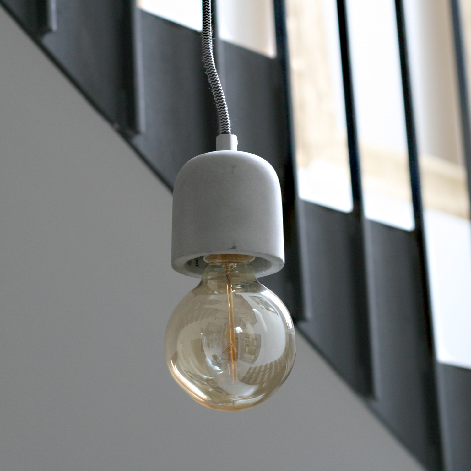 Závěsné svítidlo malé beton s velkou žárovkou.
