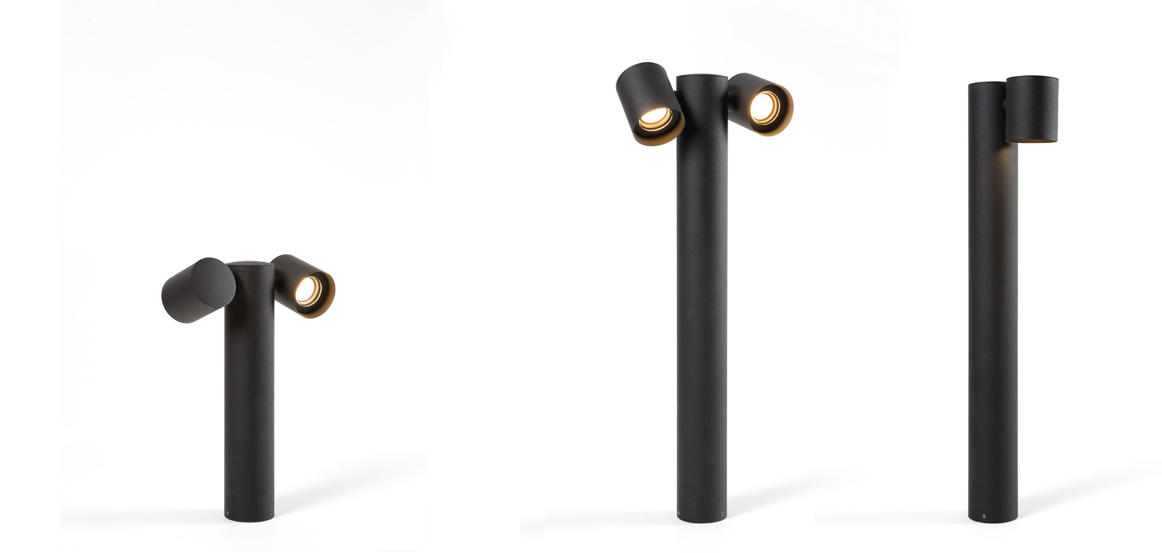 Univerzální venkovní svítidlo ve dvou výškách. Dolní část je ideální pro osvětlování cesty. Vyšší verze je lépe vybavena pro zvýraznění funkcí zahrady. Forma se dokonale hodí ke své funkci. Jednotky válcového světla se mohou celkově otáčet kolem těla, což je také válec, a proto mohou být použity jako svítidla nebo stmívače nezávisle na sobě. K dispozici s jednou nebo dvěma světelnými jednotkami.