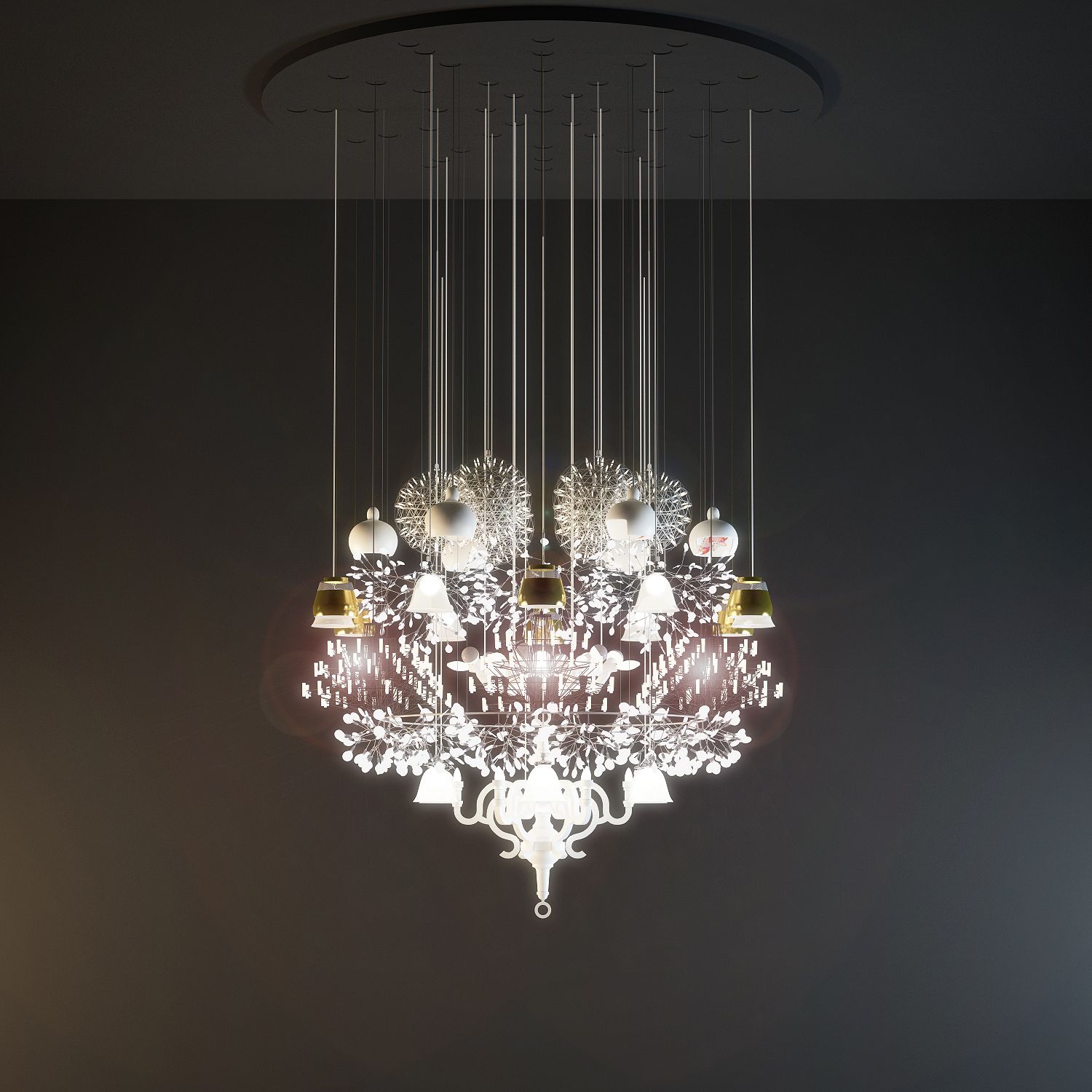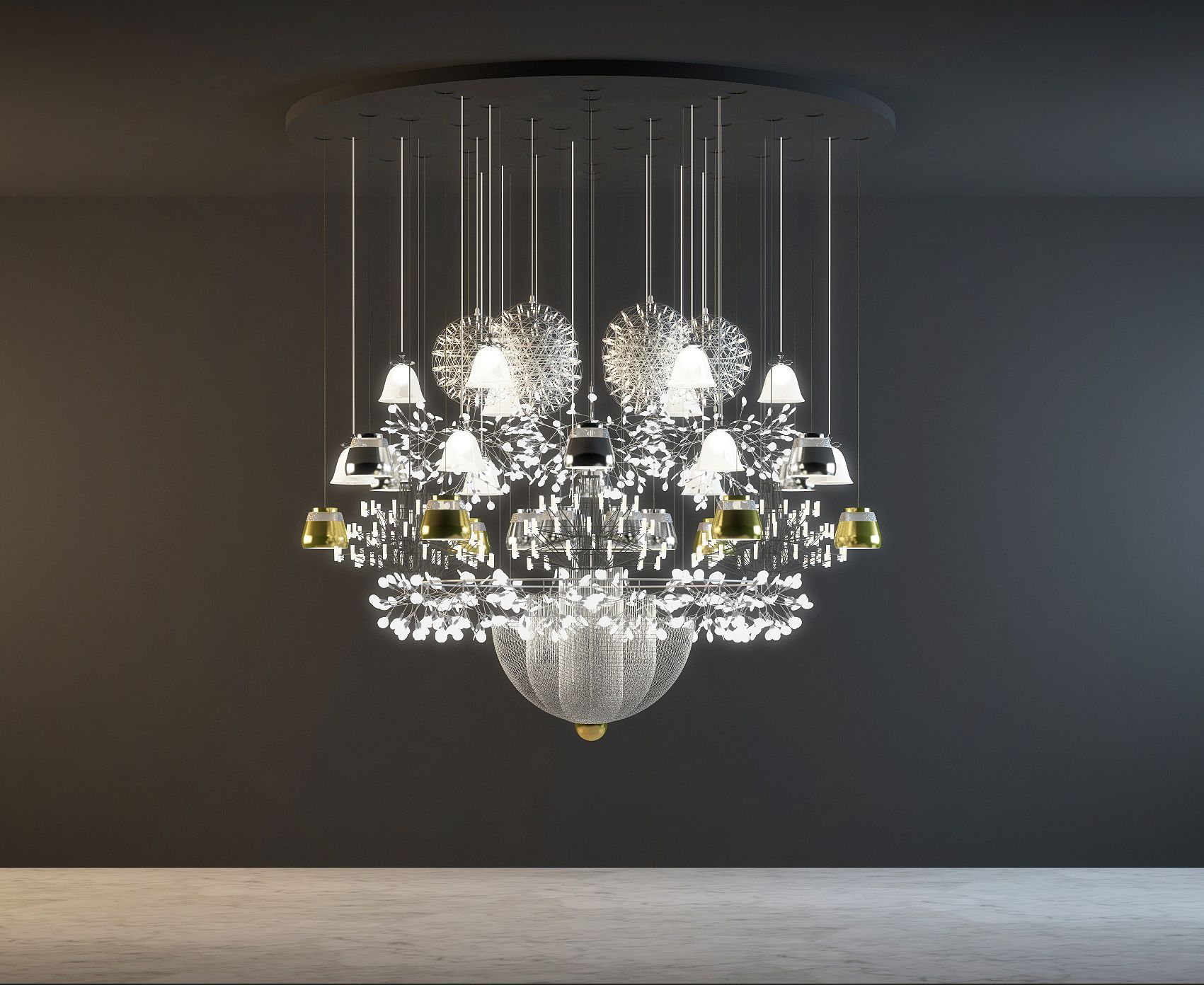 Mega Chandelier je na zakázku vyrobené závěsné svítidlo z výběru celé kolekce lamp Moooi. Ohromující kompozice, umělecké dílo a brilantní kompozice.