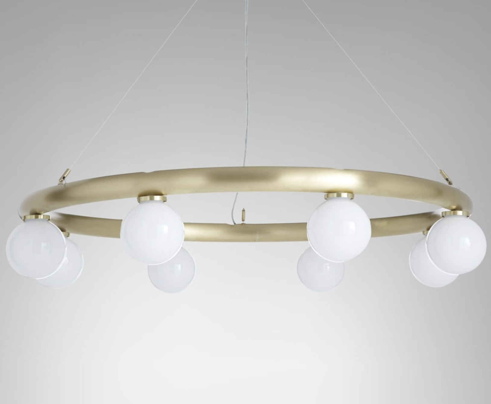 Tento ručně vyráběný lustr Orb obsahuje mosazný kruh, který umožňuje velkou možnost šíření světla. Je rafinovaný a elegantní.