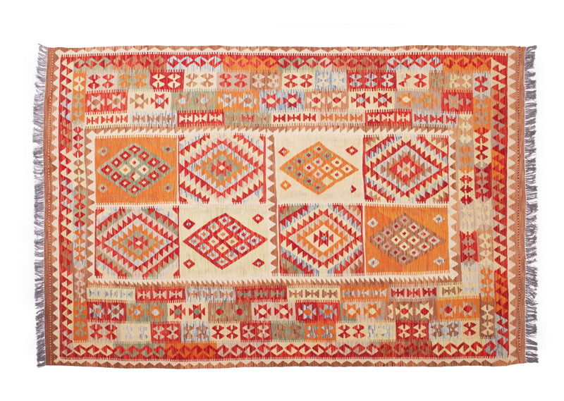 Shirin je hrdinka perské literatury. Květy světlice barvířské, jetel a slupky ořešáku obarvily vlákna ovčí vlny do jemných odstínů. Kombinace přírodních barev, originálního vzoru a ručně předené ovčí vlny zútulní každou místnost. Tento krásný dekorativní koberec pochází z oblasti Maimana na severu Afghánistánu.