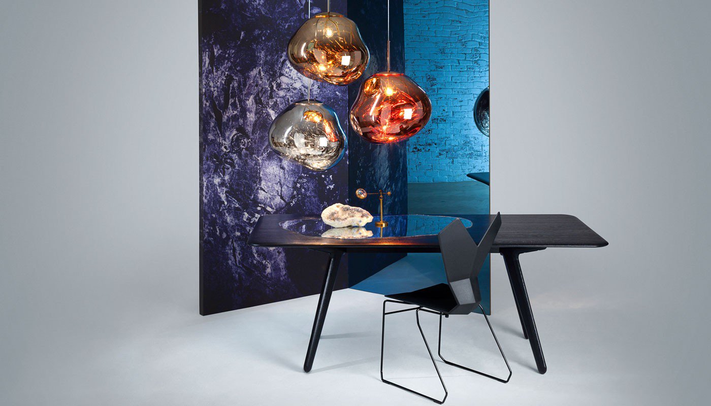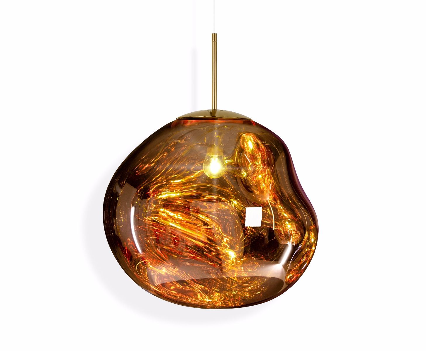 Melt od Toma Dixona je krásně tvarovaná světelná koule, která vytváří okouzlující efekt taveného foukaného skla. Průsvitná když svítí, jako zrcadlo, když je světlo vypnuté. Vydává atraktivní, mírné světlo. K dispozici je v mědi, zlatě a chromu.