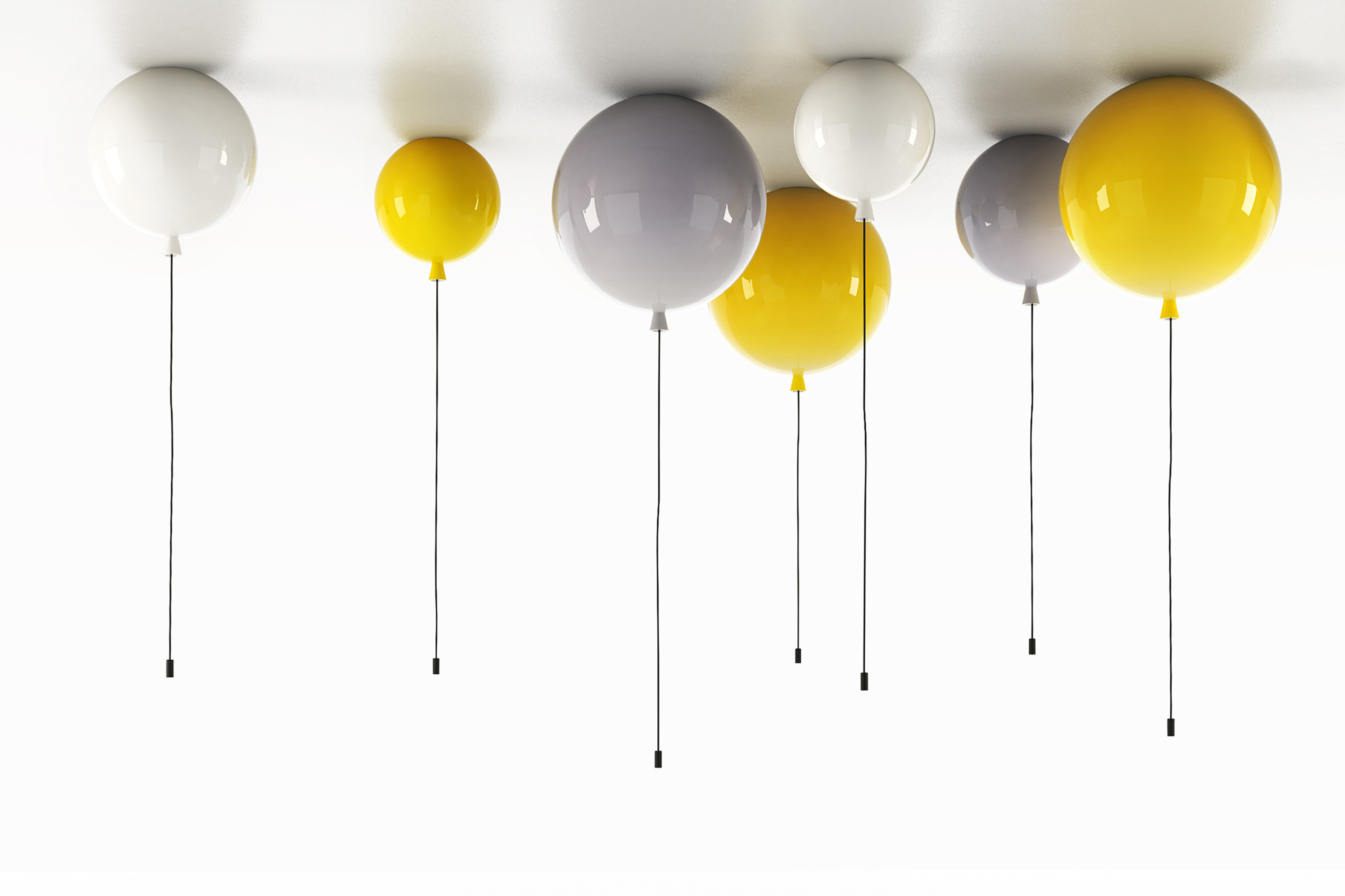 Kolekce stropních a nástěnných svítidel Memory je inspirovaná vzpomínkami na dětství. Visící šňůry slouží na vypínání a zapínání svítidel. Tři velikosti a množství barevných provedení dává v interiéru volný průchod hře, fantazii a vytvoření různých světelných atmosfér. Materiál: triplexopálové sklo. Rozměry: 25, 30, 40 cm