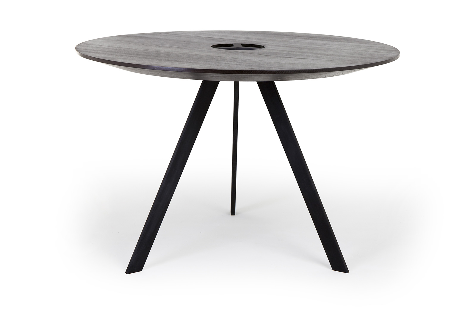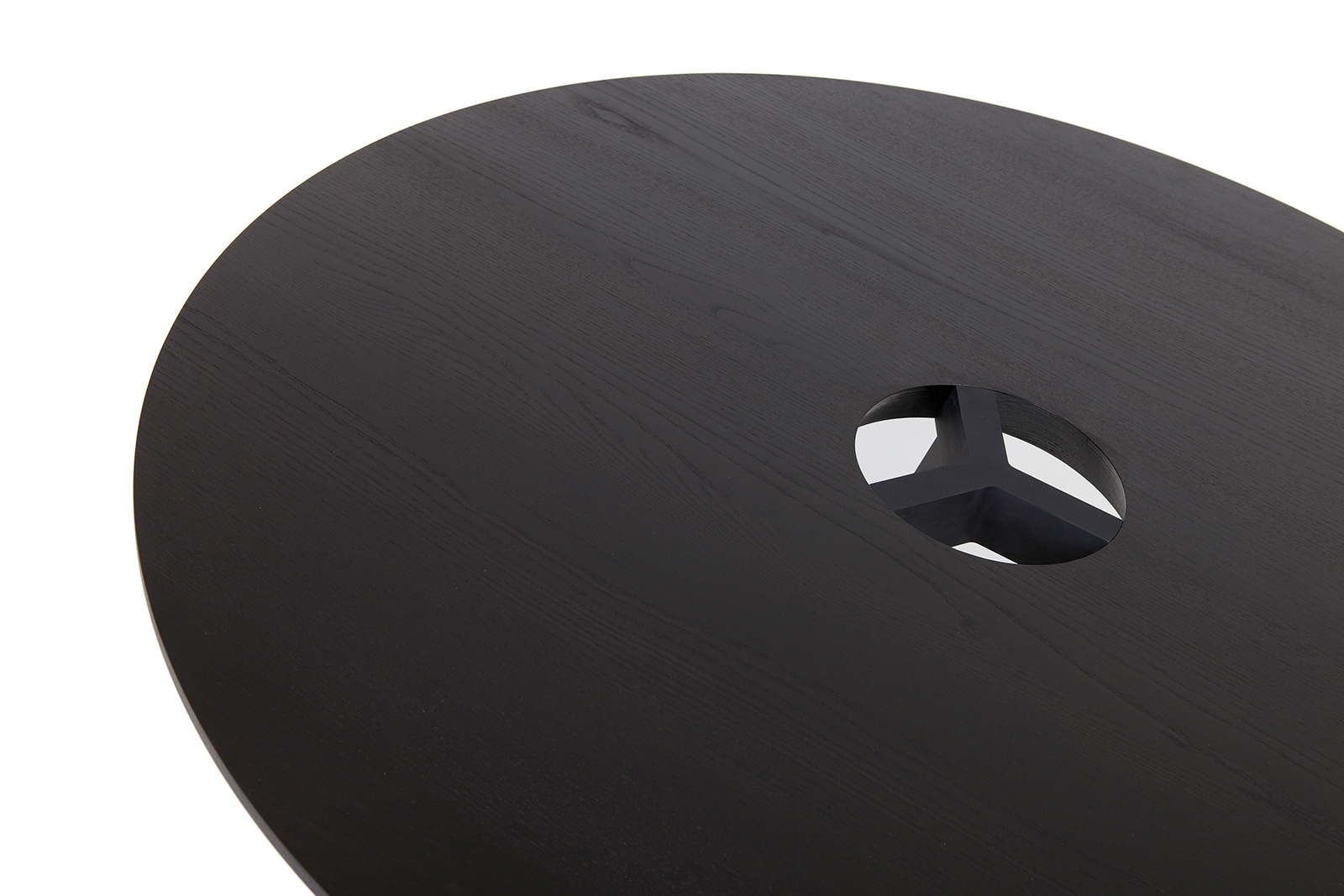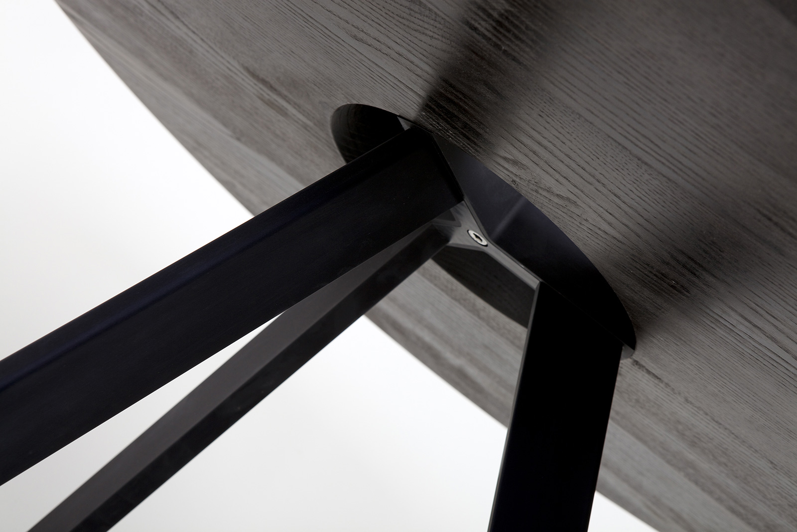 netradičním spojením desky stolu a podnoží vzniká výrazný dekorativní prvek, který odhaluje konstrukci podnoží na vrchní straně stolové desky – setkávají se zde dva materiály. jasan v podobě stolní desky (mořený na černo) a podnoží z hliníku v povrchové úpravě eloxu (černý nebo přírodní).