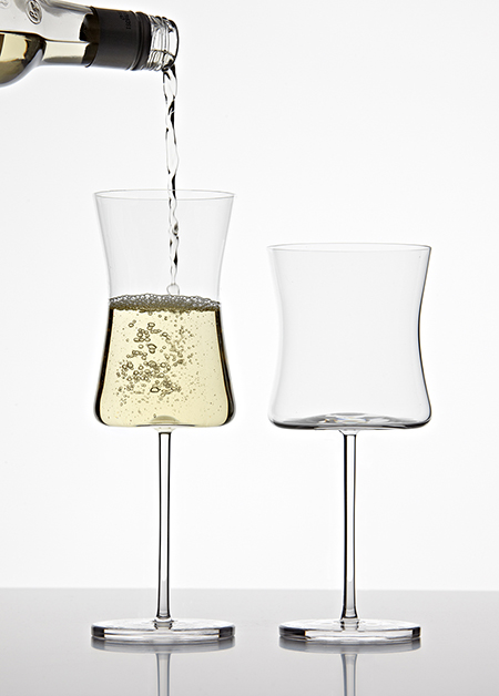 Set vychází z tvaru válce, který je vprostřed prolnutý, čímž je strohý geometrický tvar příjemně odlehčen. Tvarovou křehkost a jednoduchost ještě umocňuje tenká nožka, jejíž délka se mění podle typu kalichu. Prolnutí těla sklenice umožňuje pohodlné držení uprostřed, čímž boří doposud zaběhnuté konvence someliérského způsobu užívání.
