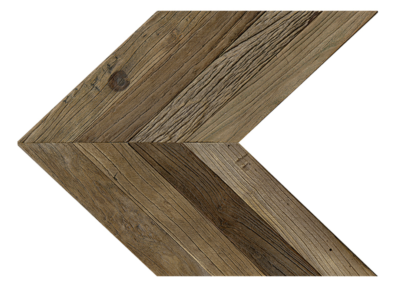 Dřevěné mozaiky ve tvaru šípu, které se liší barevností v závislosti na modelu.