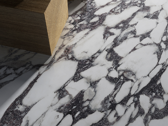 Viola Blue kombinuje bílé a krémové s šedými a modrými tóny. K dispozici ve formátech 154 cm x 328 cm, 150 cm x 300 cm, 120 cm x 250 cm a 120 cm x 120 cm. Kousky v této kolekci vynikají svým grafickým bohatstvím a intenzivním světlem v leštěném a hedvábném provedení.