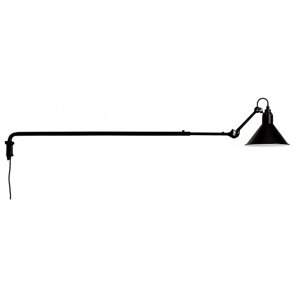 Nástěnná lampa N°213 je teleskopicky nastavitelná a dá se prodloužit od 107 cm do 146 cm. Díky důmyslnému kloubovému systému v základním tvaru je lampa vyrobena bez použití šroubů ani svařovaných spojů. Součástí balení je 2,9 m černého textilního kabelu s vypínačem. Žárovka není součástí balení.