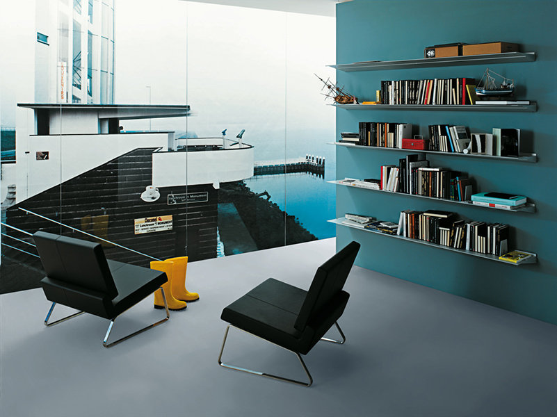 Nástěnná police Hang z extrudovaného hliníku může být použita v řadě a vytvořit tak nekonečnou řadu polic. Držák na knihy, na cd, dvd, věšák a mnoho dalšícho doplňujícího příslušenství vytváří z Hang univerzální produkt.